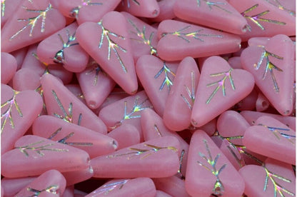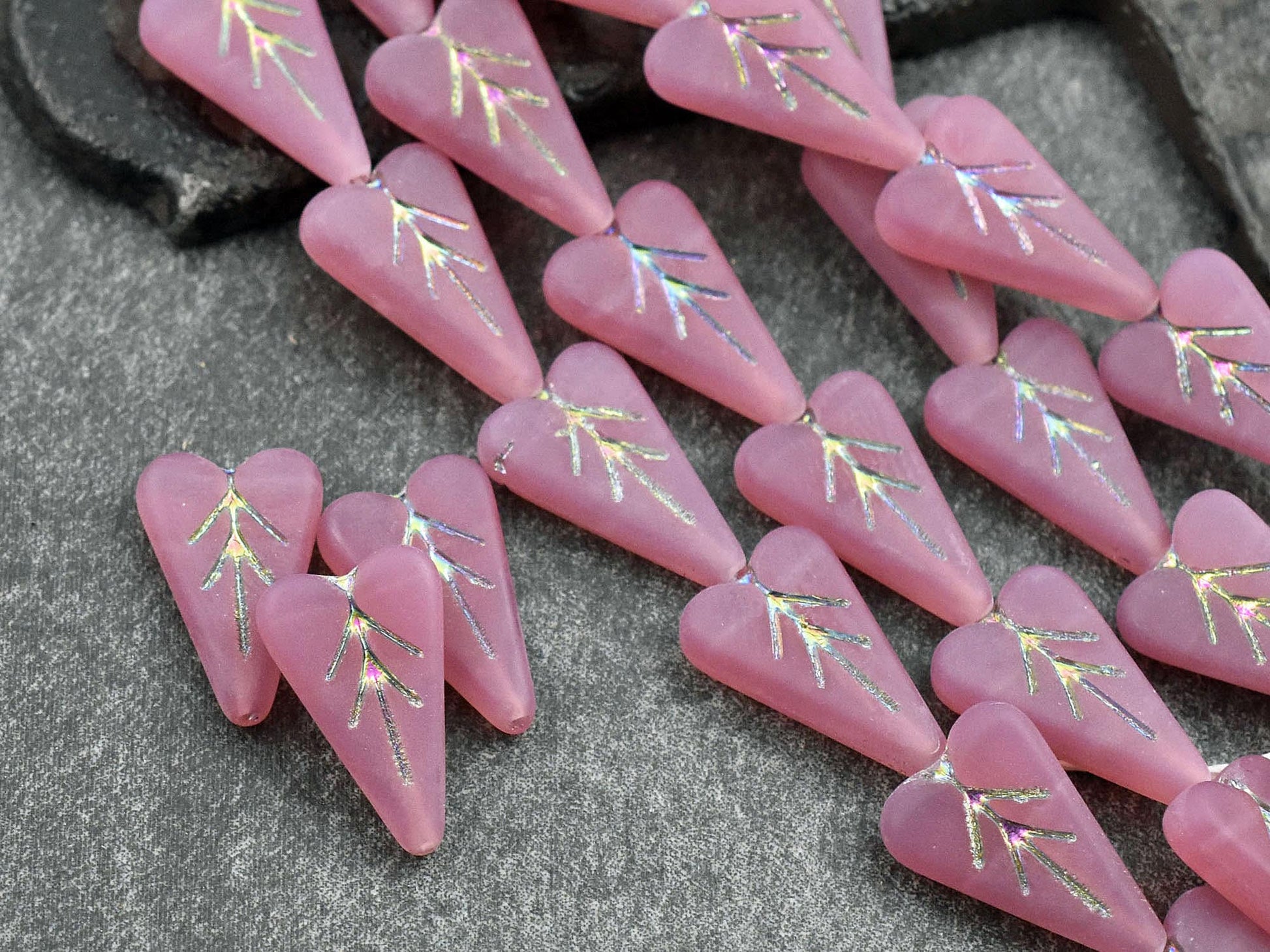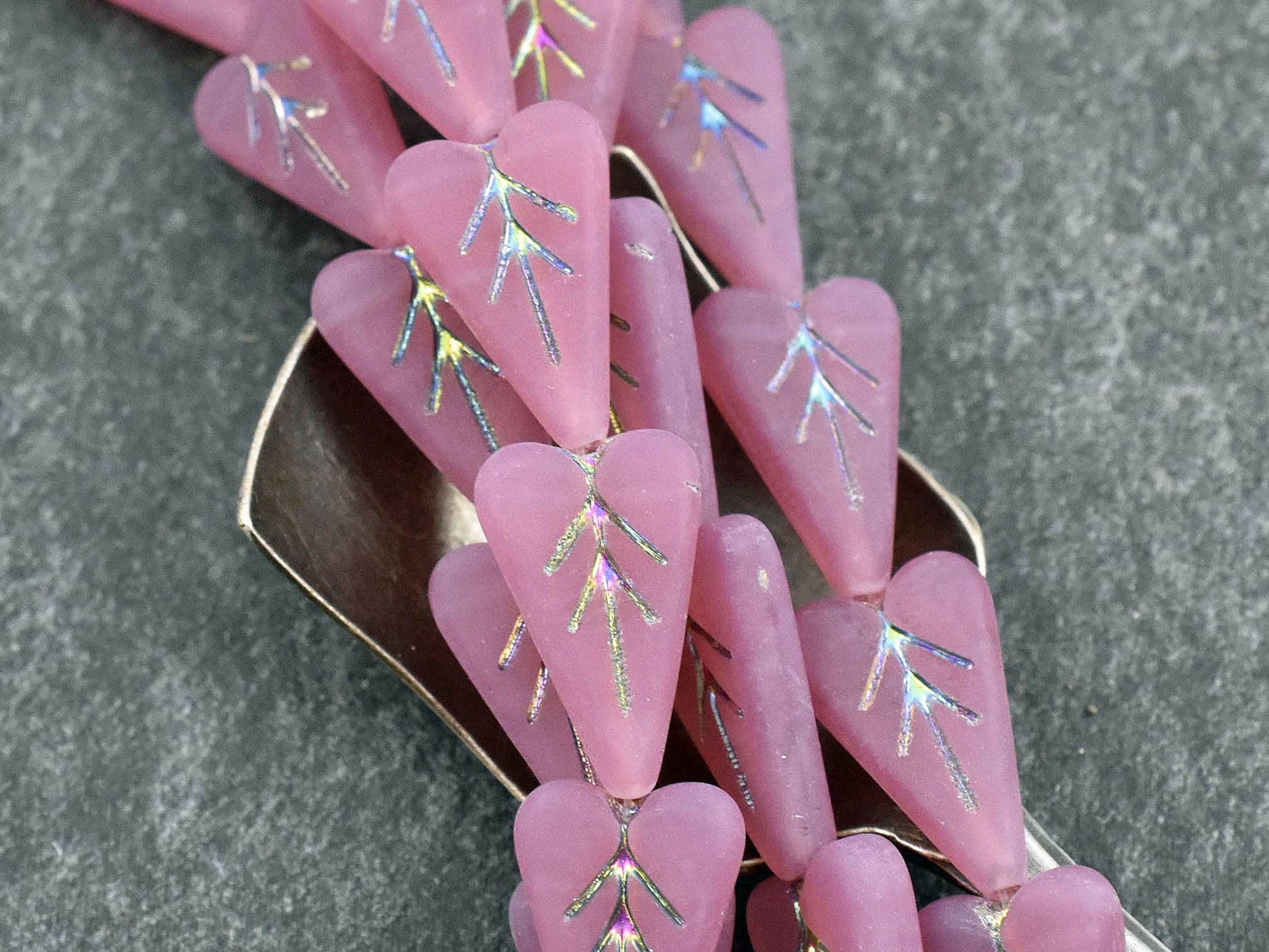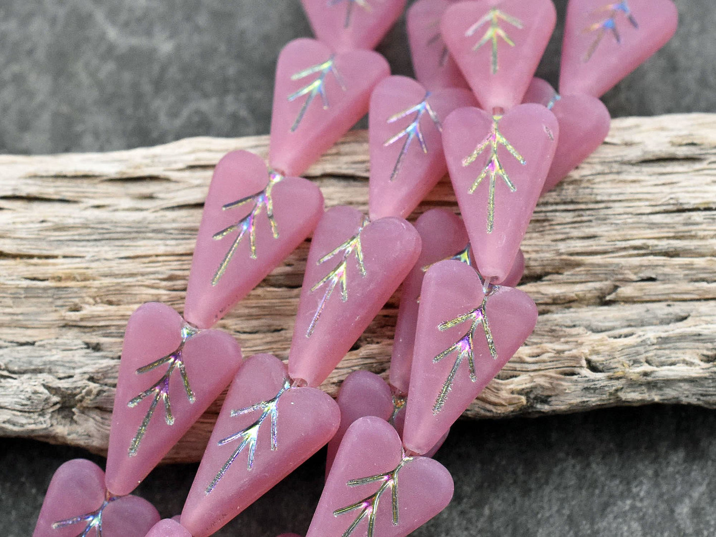 *8* 17x11mm Rainbow Metallic Washed Matte Pink Opal Heart Leaf Beads