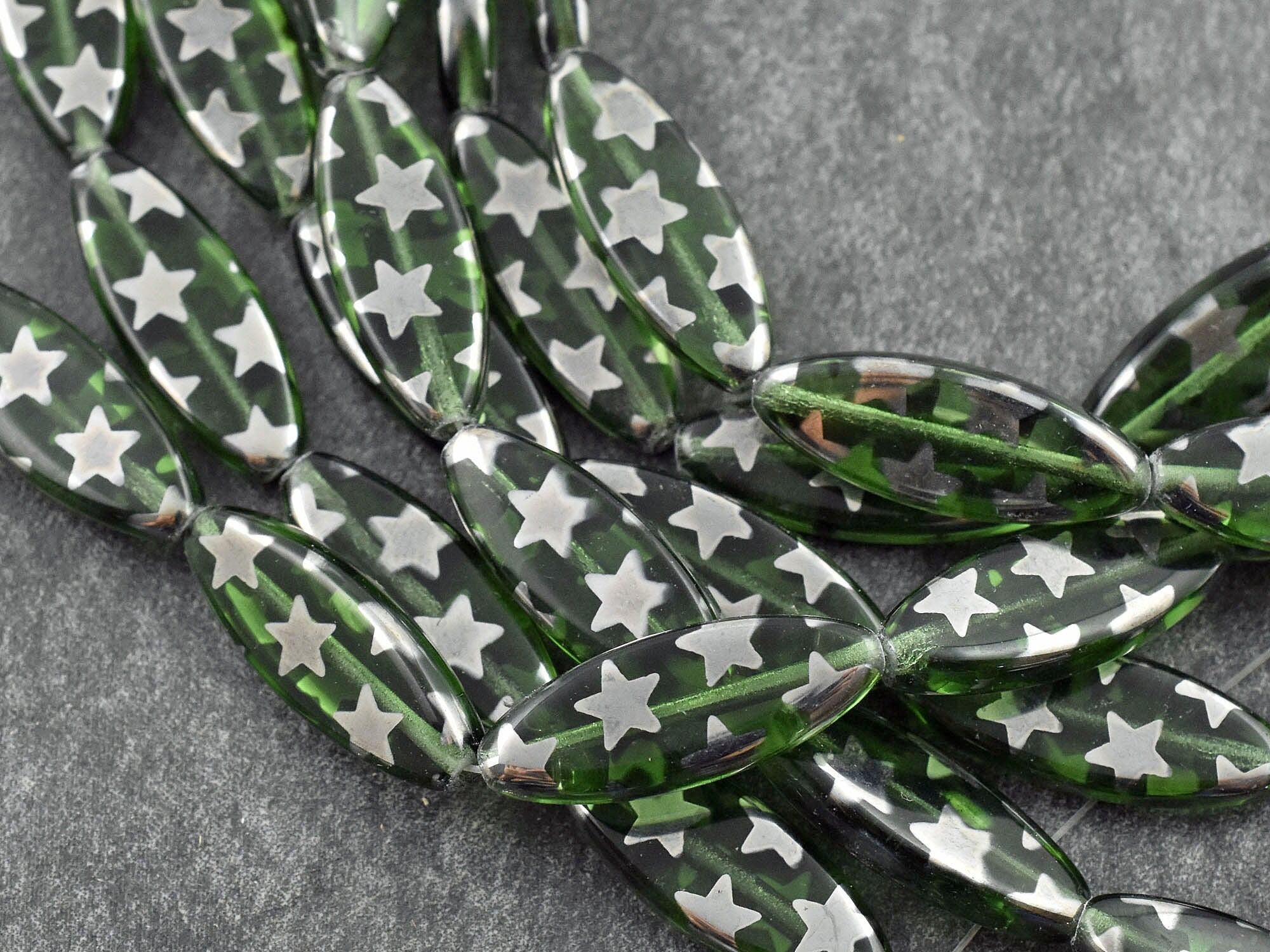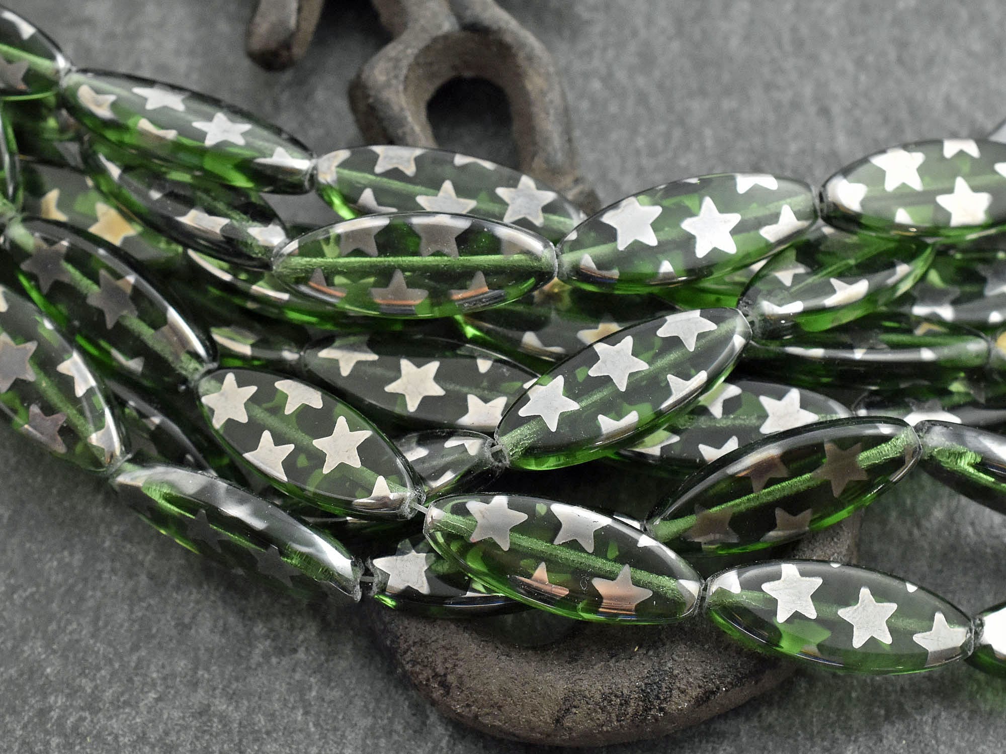 *8* 25x10mm Transparent Sage Star Spindle Beads
