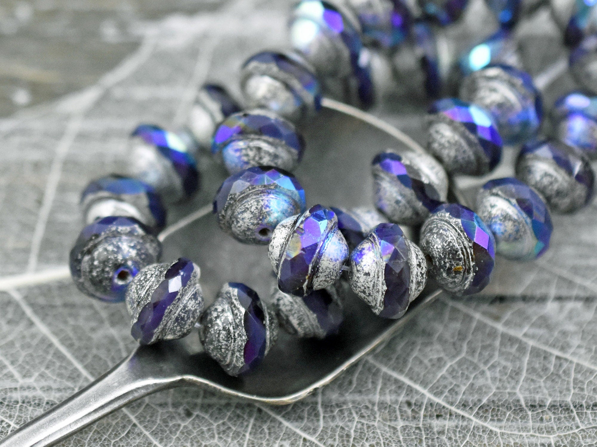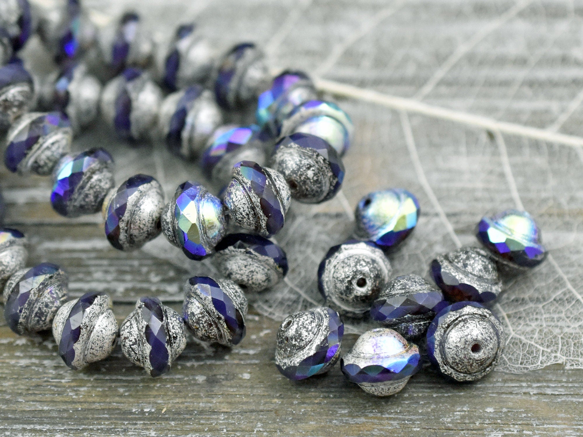 White Silver Washed Matte Violet Purple AB Saturn Beads - Choose Your Size