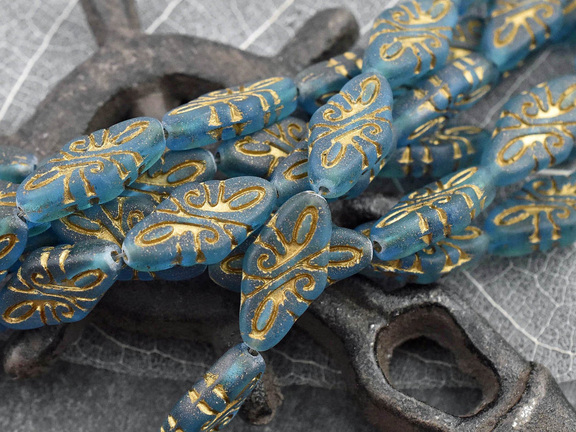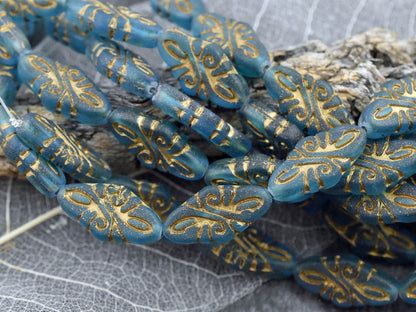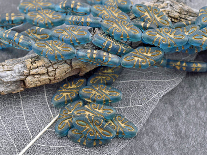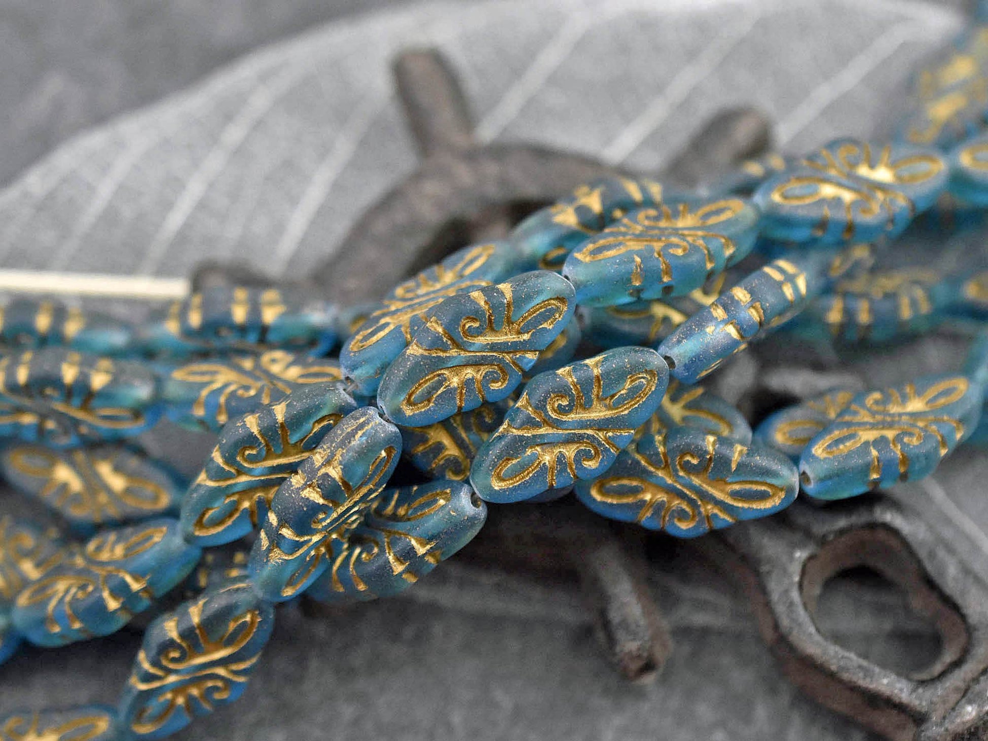 *9* 19x9mm Gold Washed Matte Teal Blue Arabesque Beads