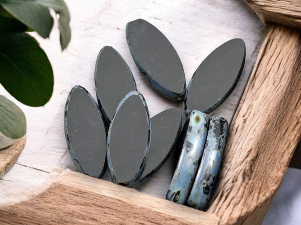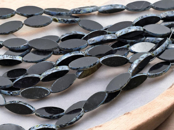 *9* 8x18mm Jet Picasso Table Cut Spindle Beads
