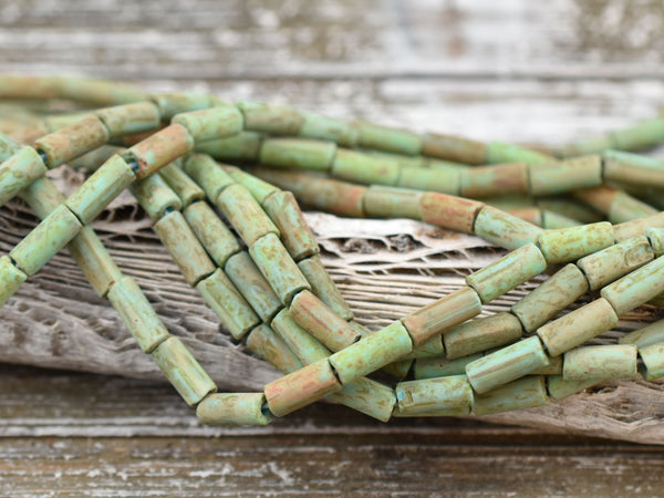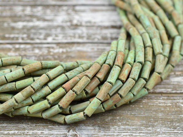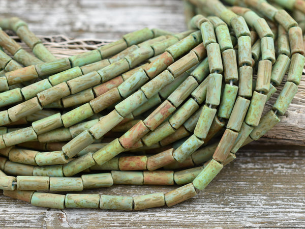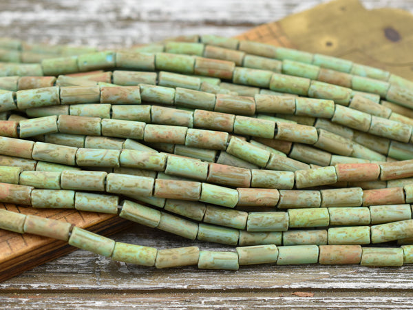 9x4mm Matte Green Turquoise Picasso Czech Bugle Beads - 20" Strand