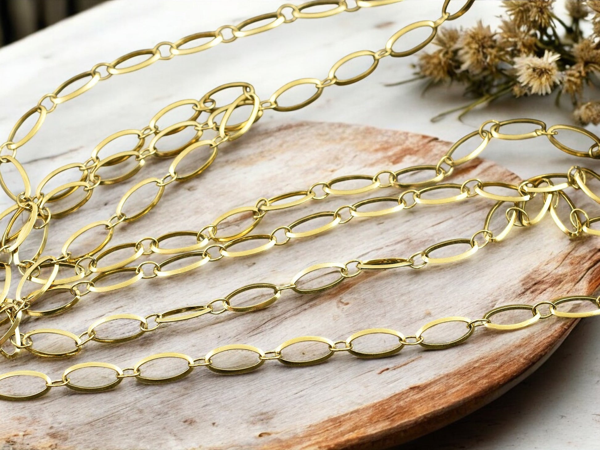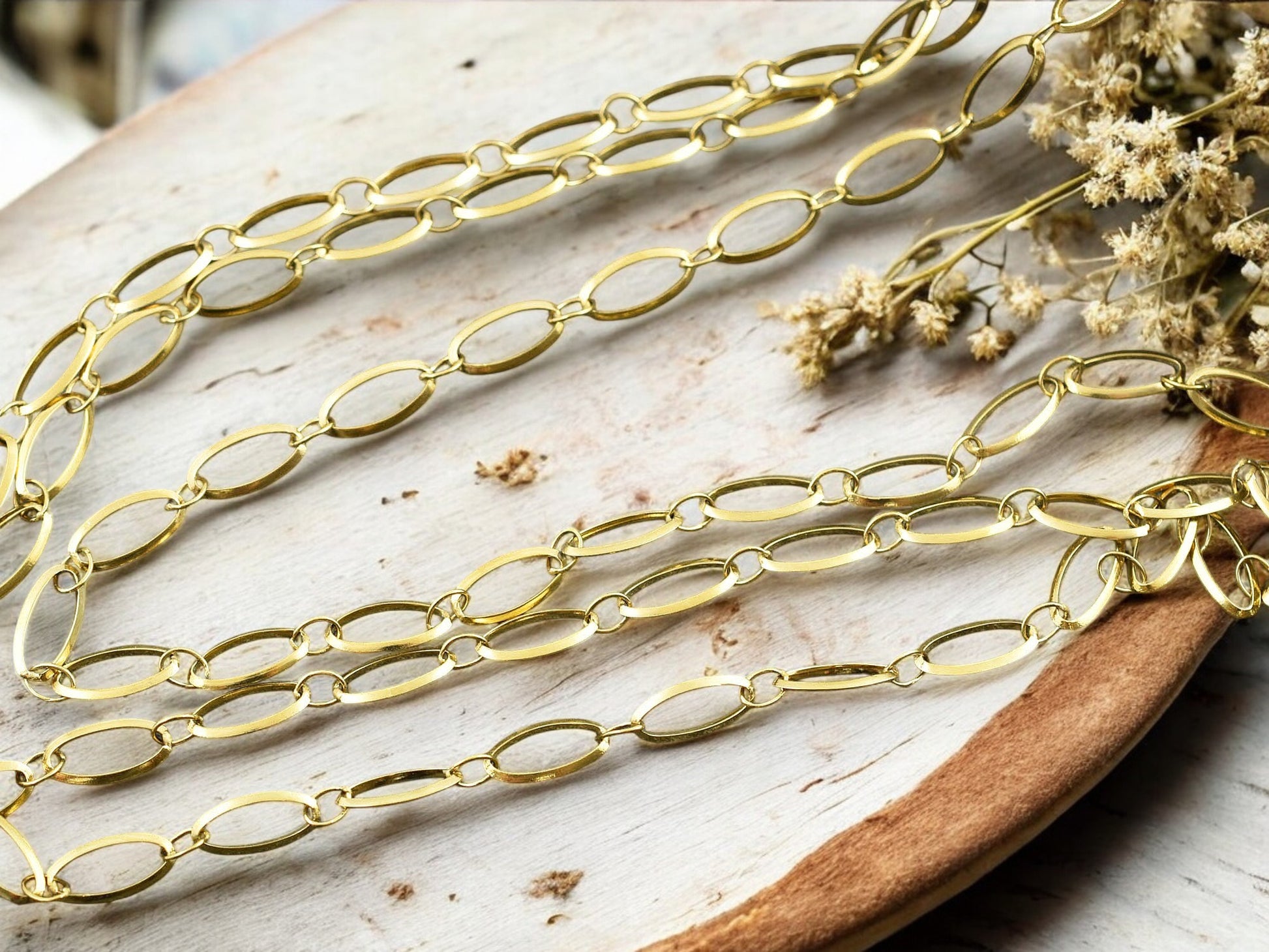 9x5mm 18K Gold Plated 304 Stainless Steel Soldered Oval Paperclip Chain (1ft)