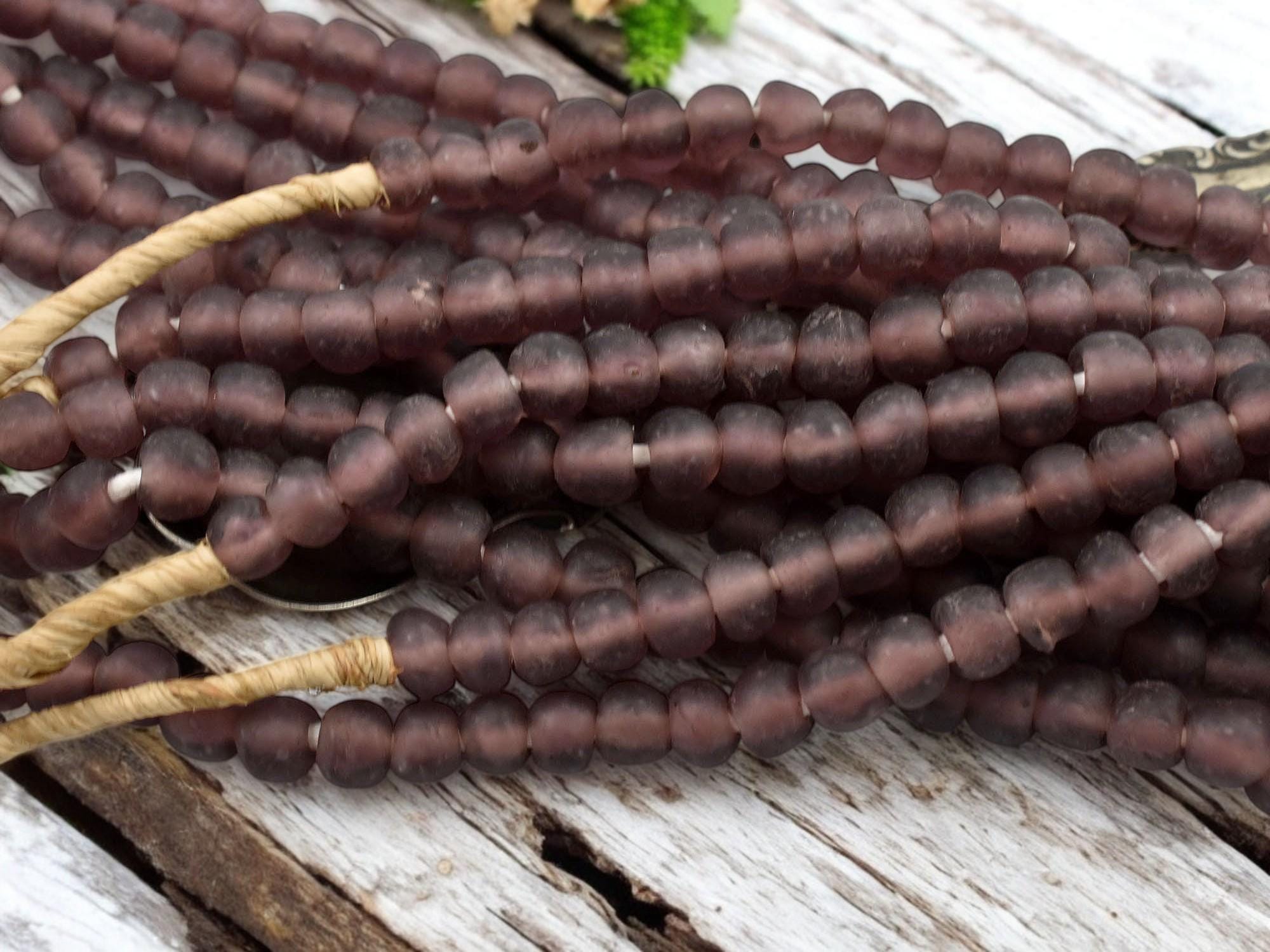 8-10mm Matte Amethyst African Recycled Glass Beads (20" Strand)
