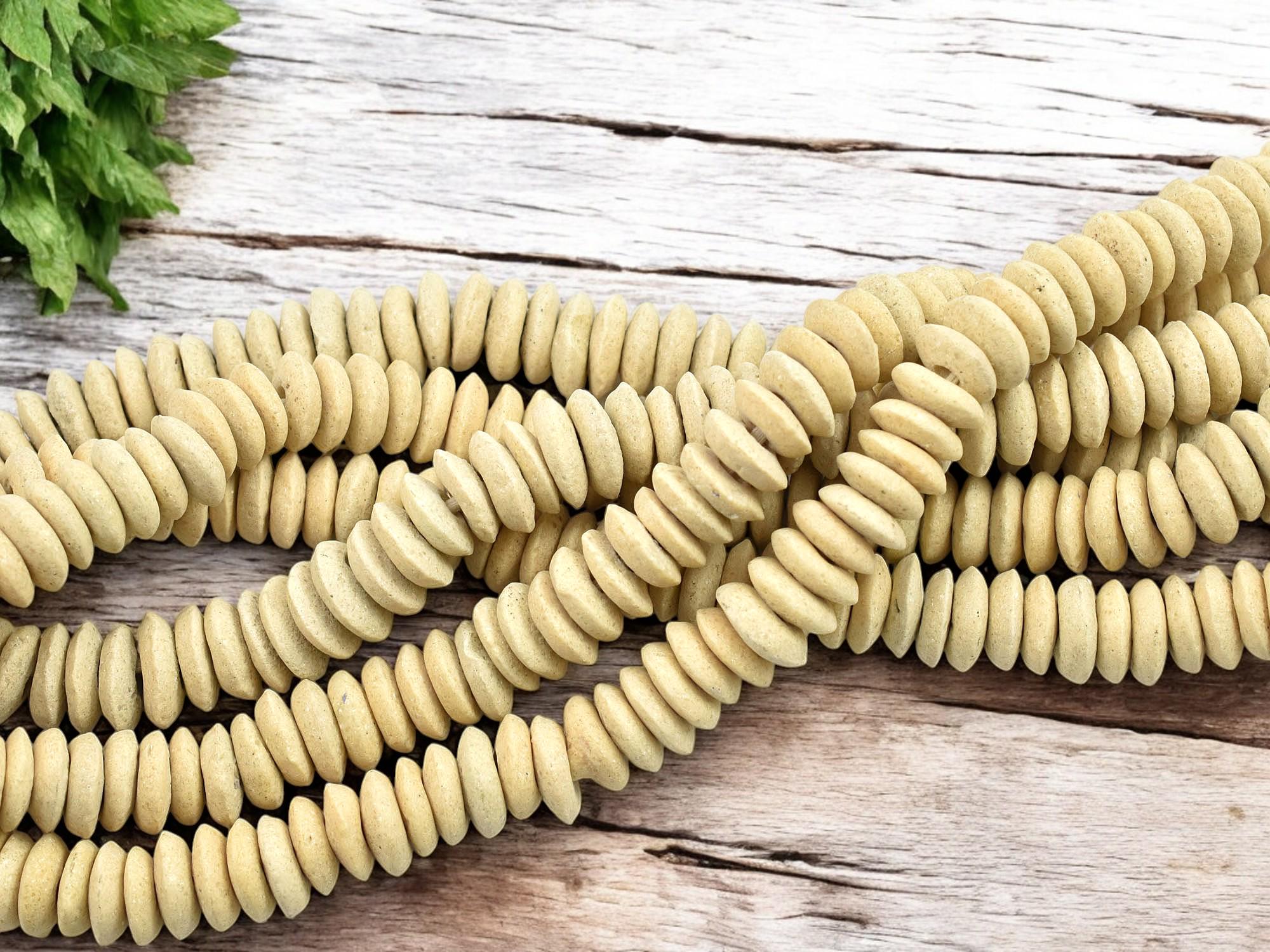 13~15mm Bisque Beige Recycled African Glass Heishi Beads