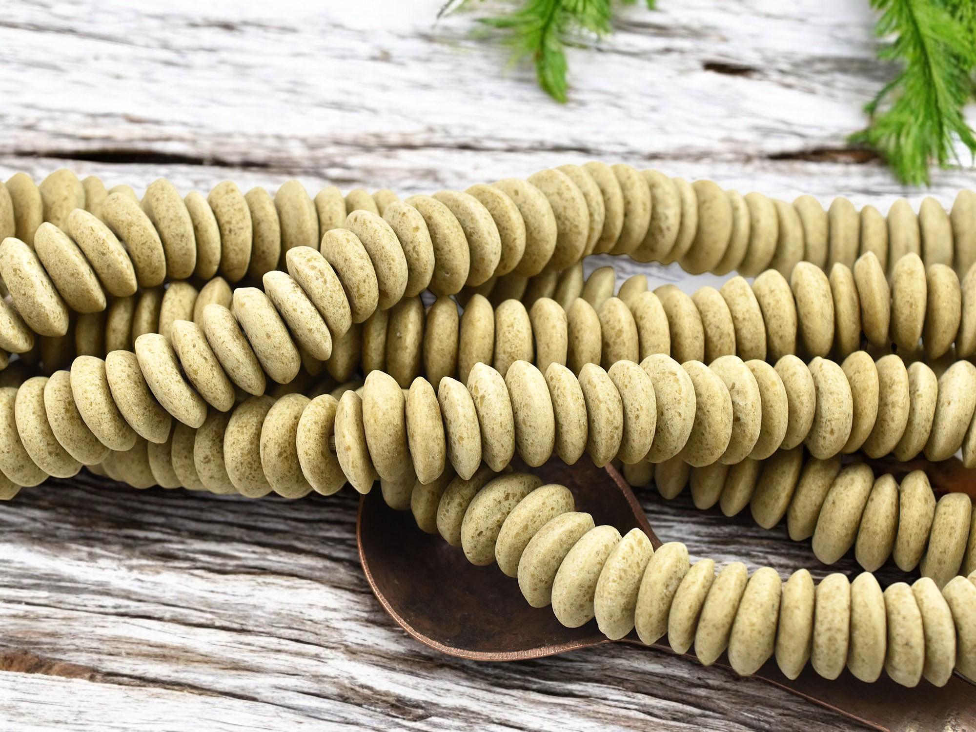 13~15mm Ecru Beige Recycled African Glass Heishi Beads