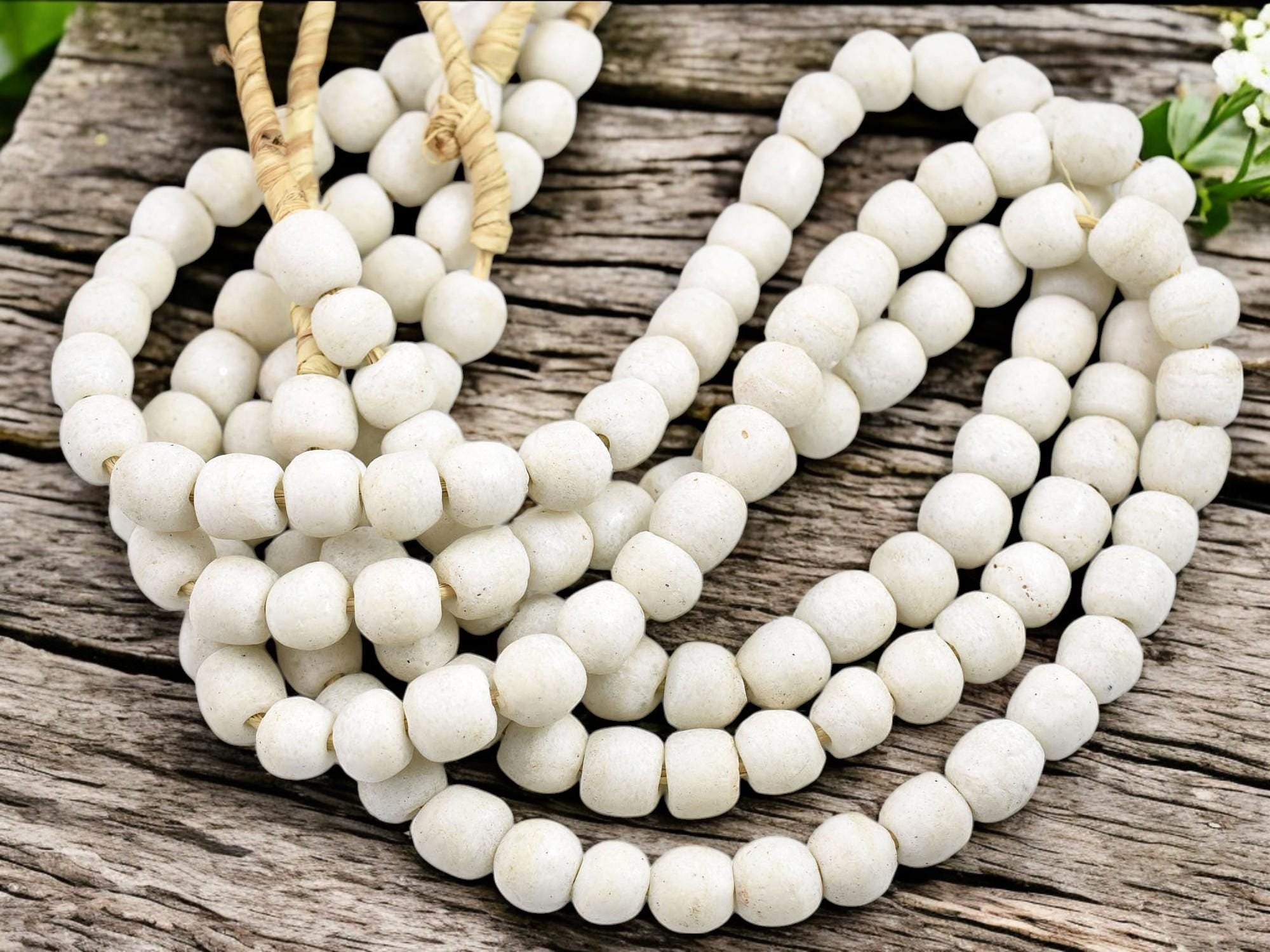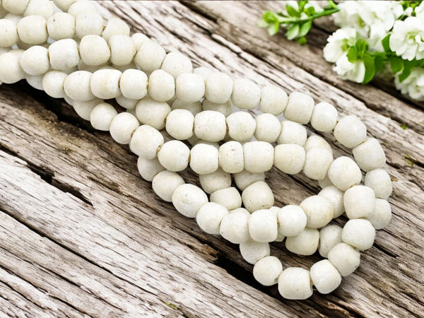 10-12mm Opaque Bone White African Recycled Glass Beads (19" Strand)