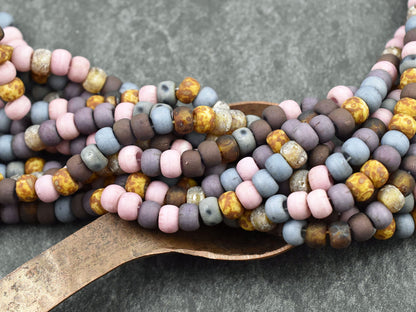 2/0 Aged Matte Tulip Picasso Mix Seed Beads (21' Strand)