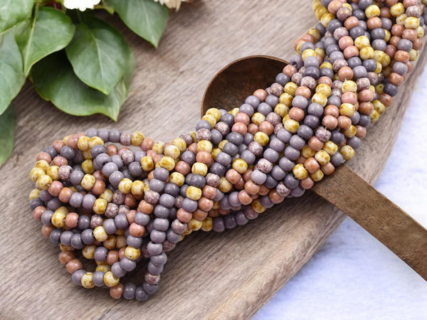4/0 Aged Cherry Blossom Picasso Mix Seed Beads (20" Strand)