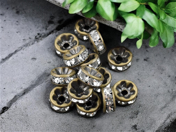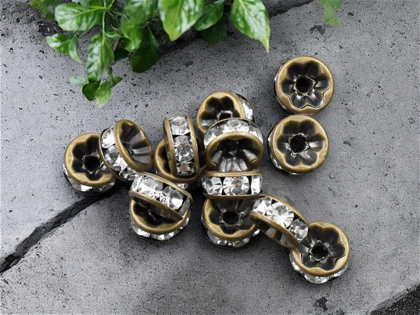 Antique Bronze w/ Crystal Rhinestone Rondelle Spacer Beads