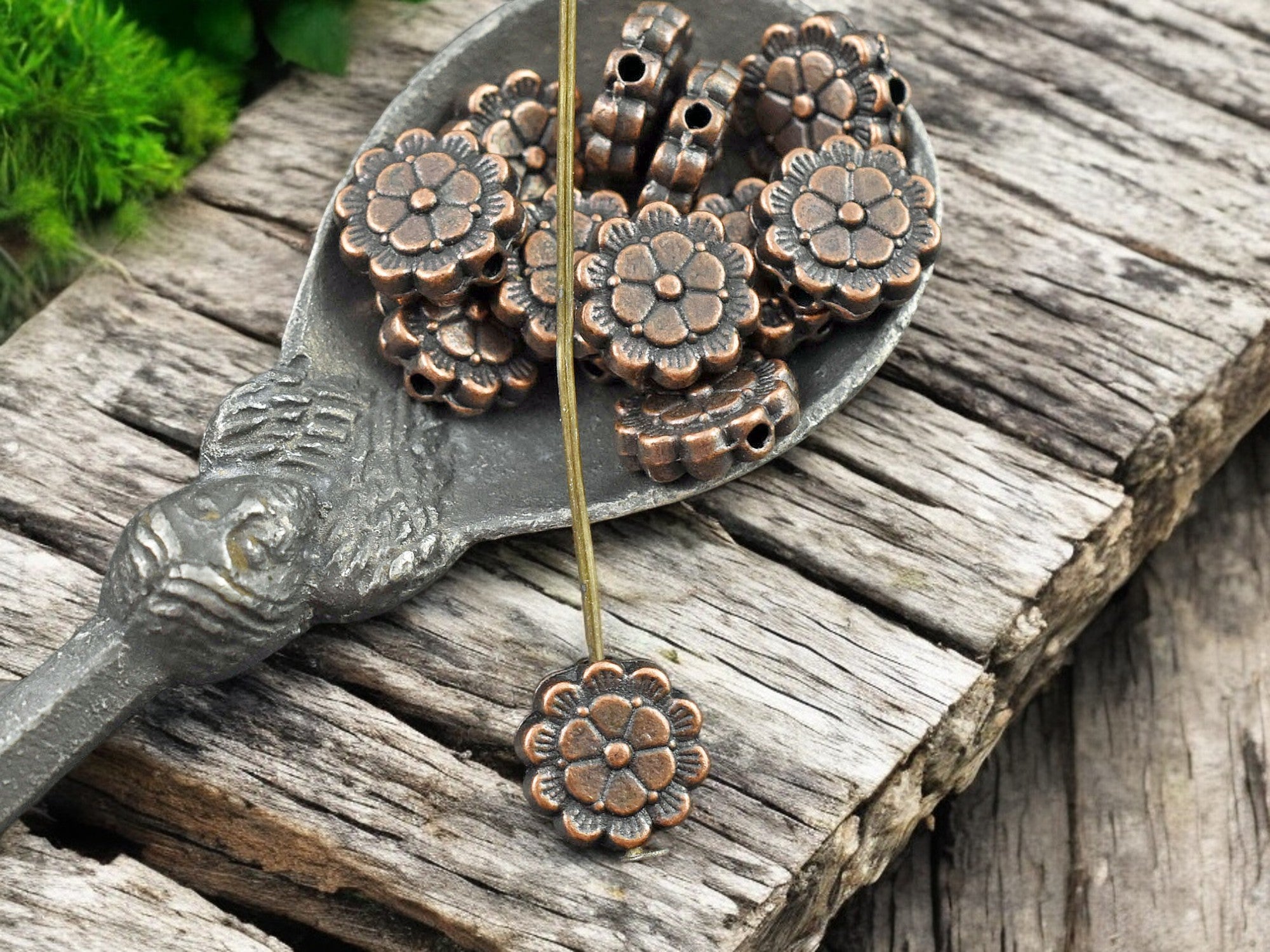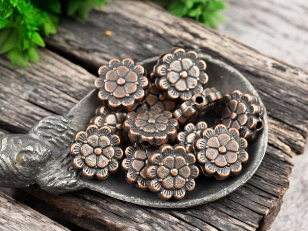*50* 9mm Antique Copper Flower Coin Beads