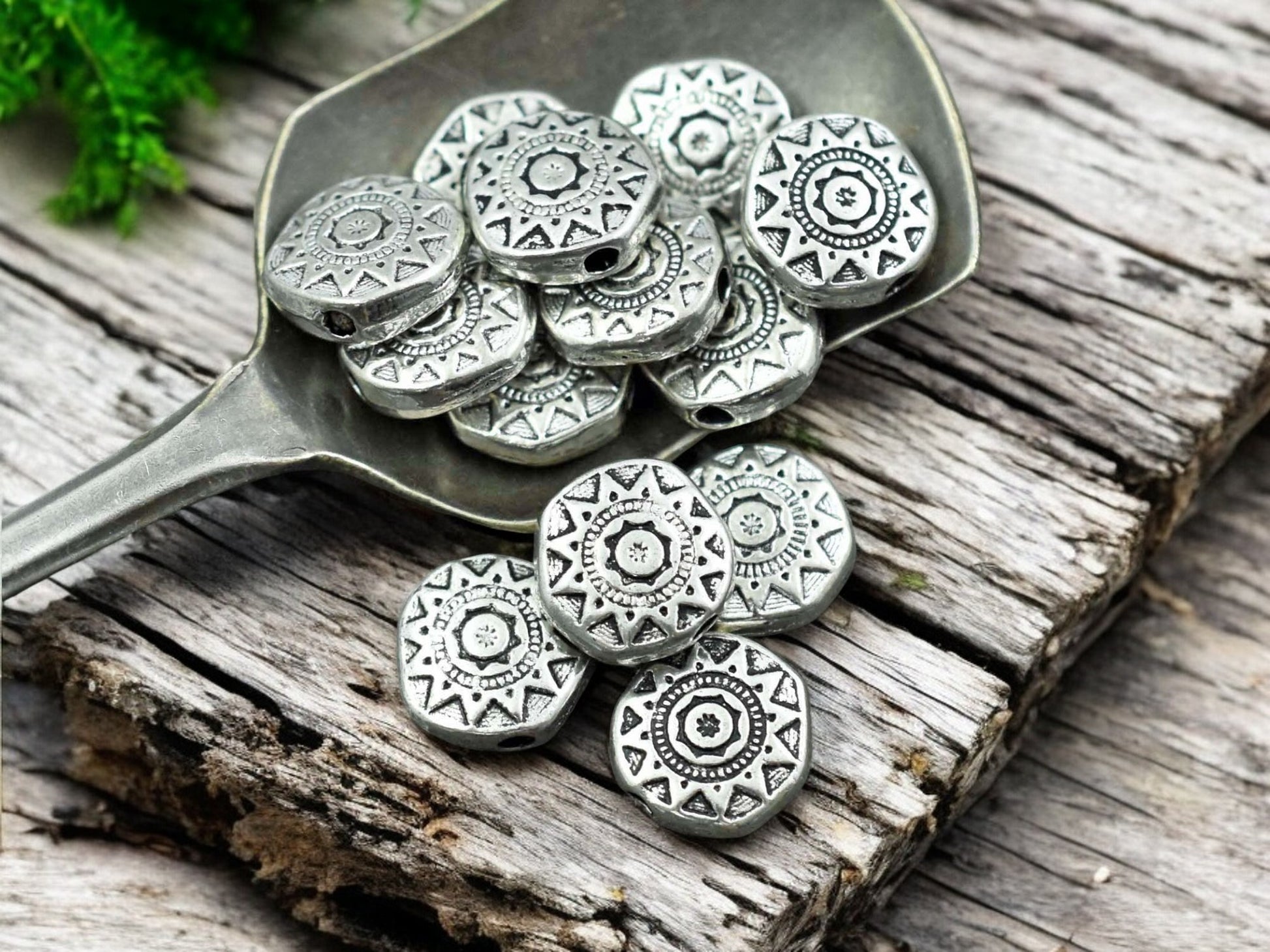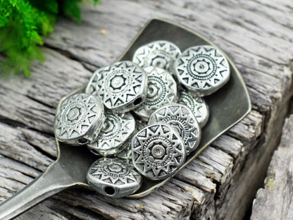 *25* 13mm Antique Silver Aztec Sun Coin Beads