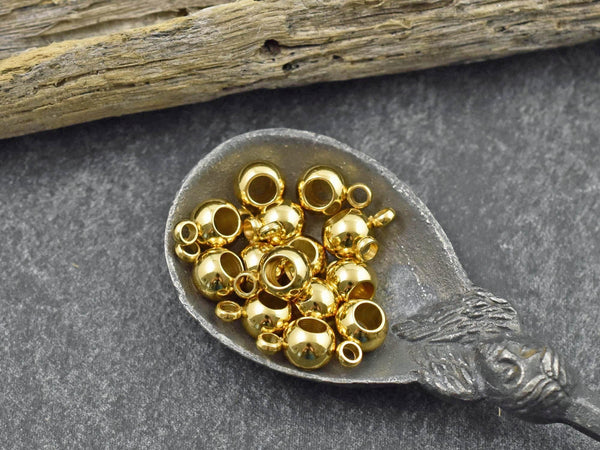 *50* 6mm 24K Gold Plated Stainless Steel Charm Hanger Bail Beads