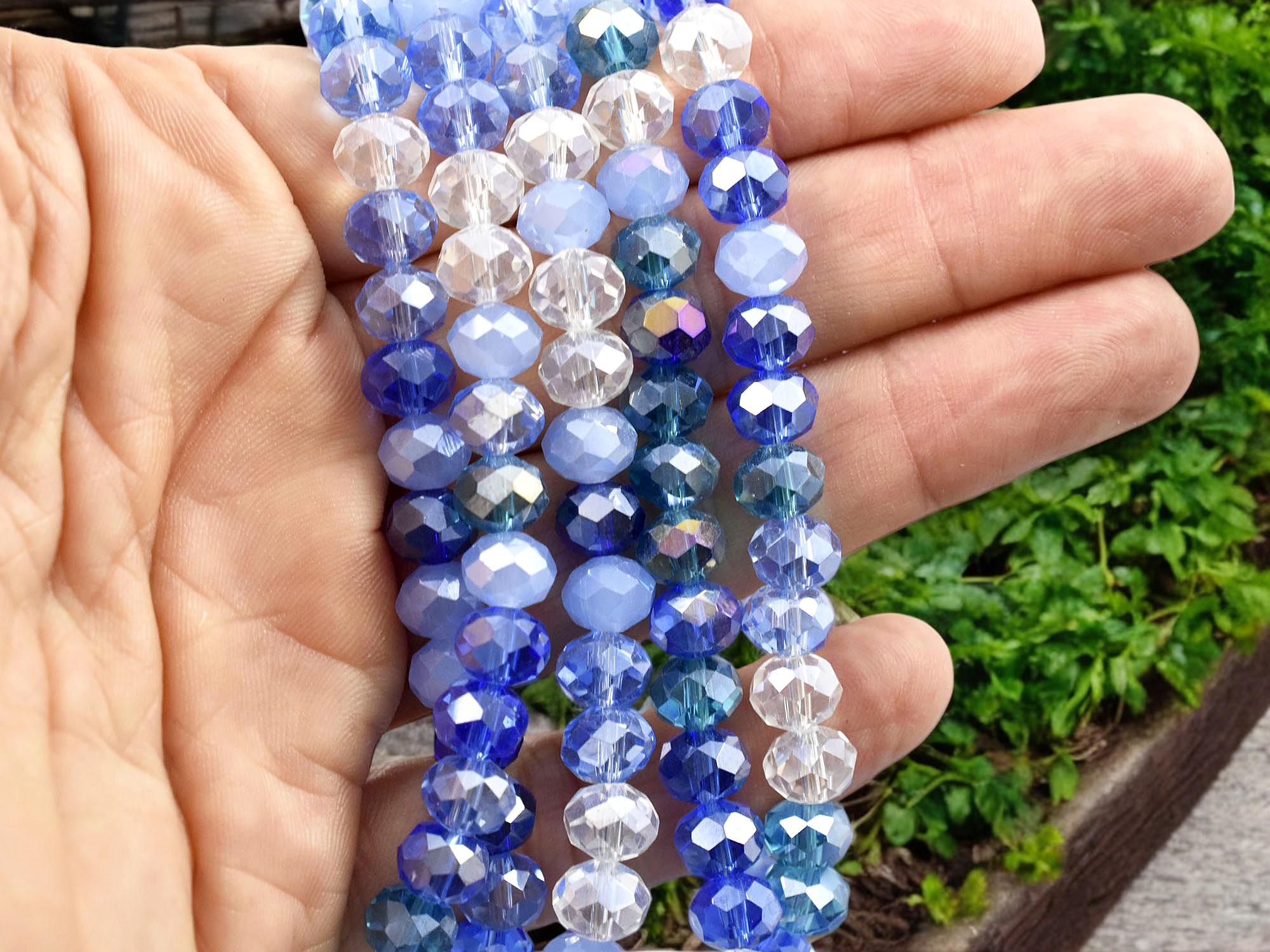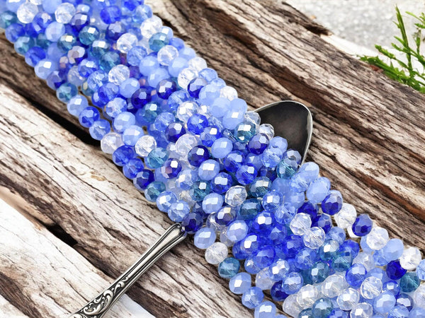 6x8mm Blue Mix Electroplated Glass Faceted Rondelle Beads (16" Strand)