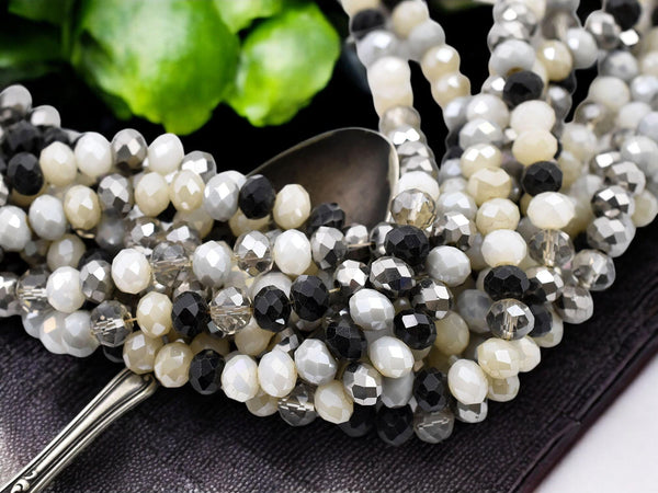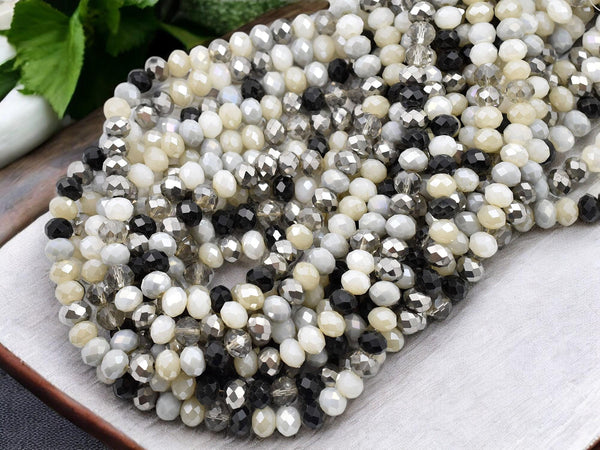 6x8mm Mixed Black & White Electroplated Glass Faceted Rondelle Beads (16" Strand)