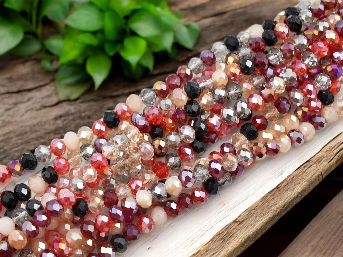 6x8mm Red Mix Electroplated Glass Faceted Rondelle Beads (16" Strand)