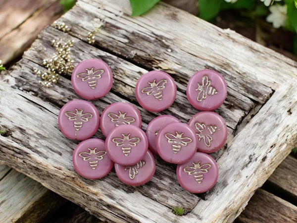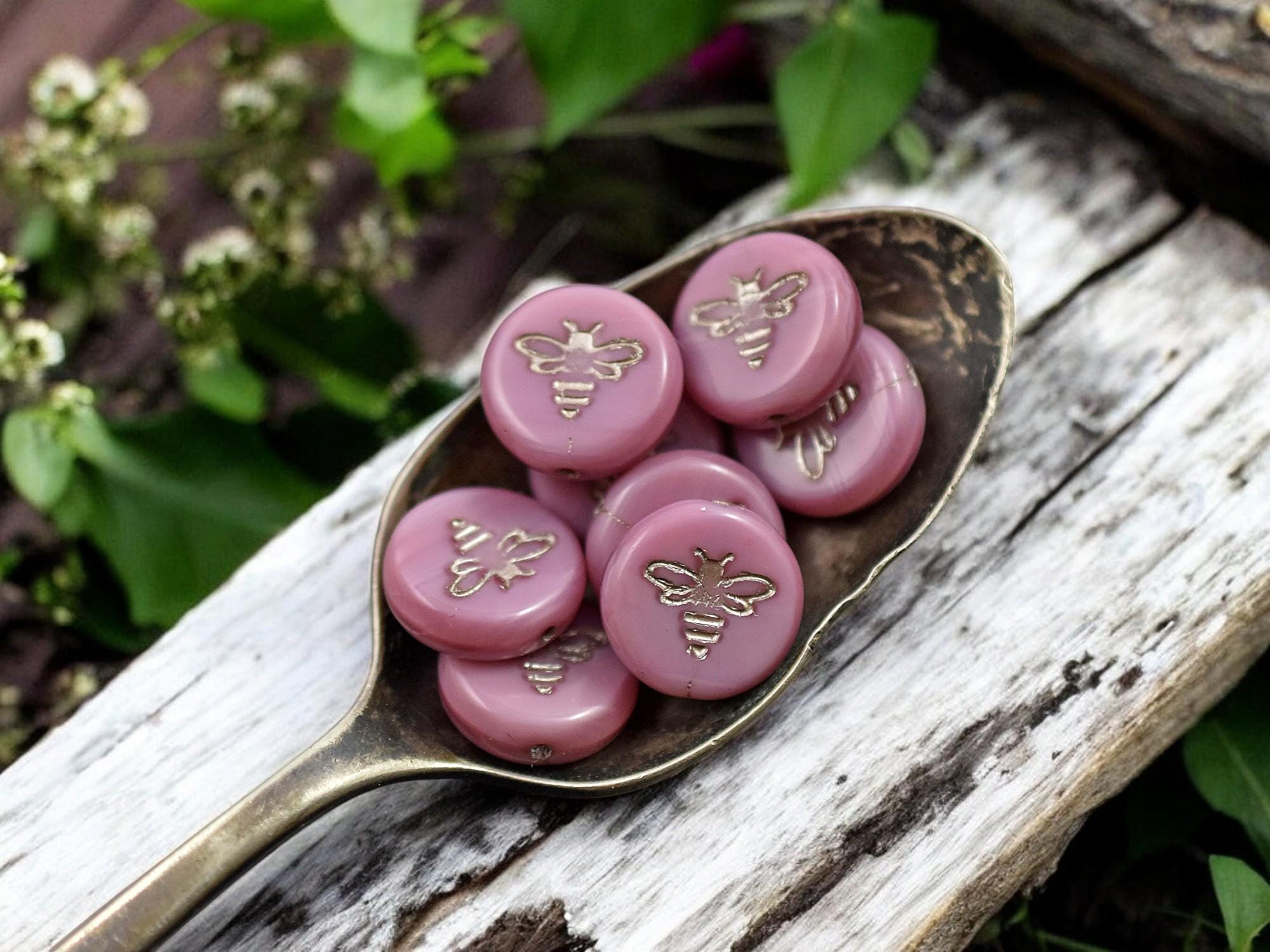♥ Type/Shape: Czech pressed glass coin beads with flying bee design (design on both sides of bead)