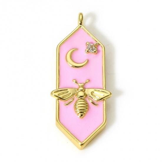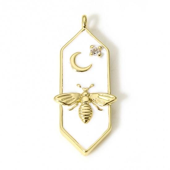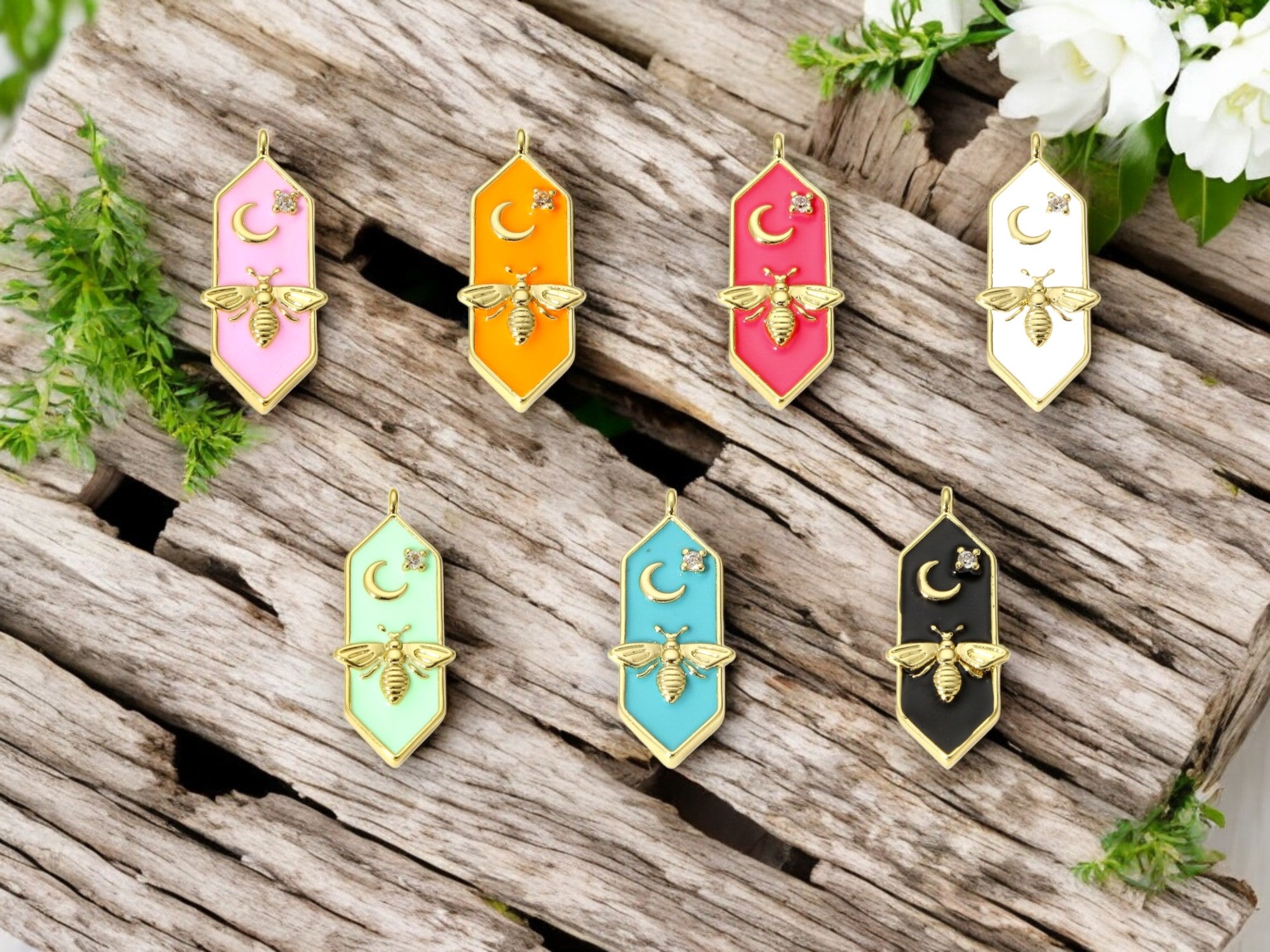 Type/Shape: Enamel charms with bee design - top has crescent moon & clear CZ embelishment