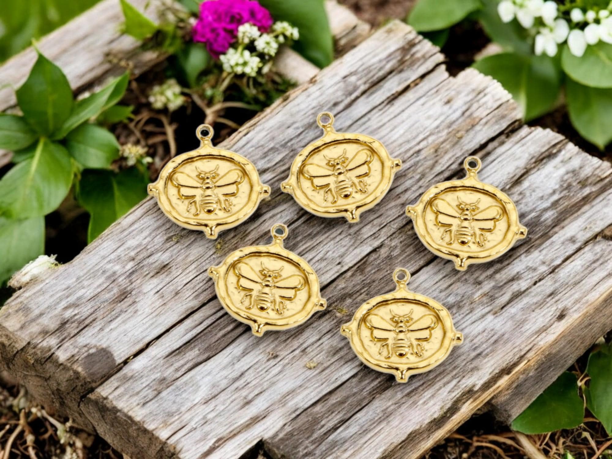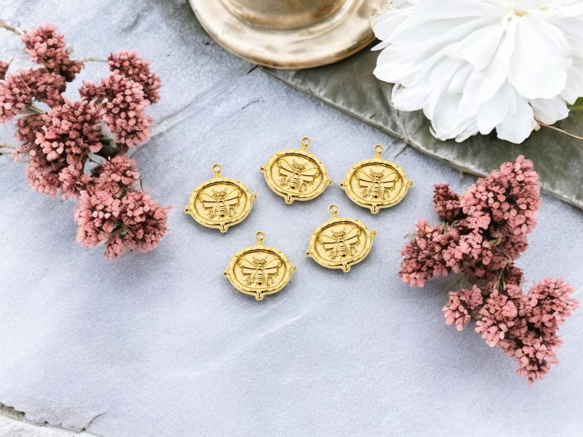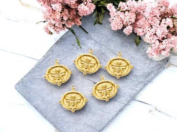 *5* 17mm 18k Gold Plated Oval Bee Charms