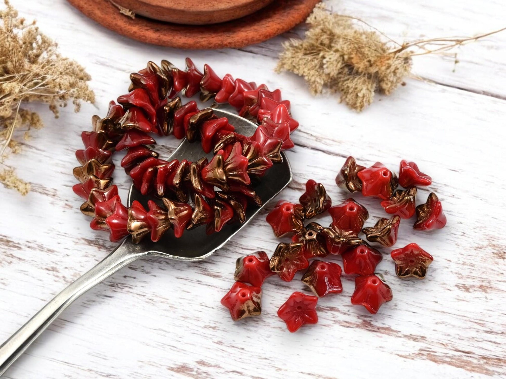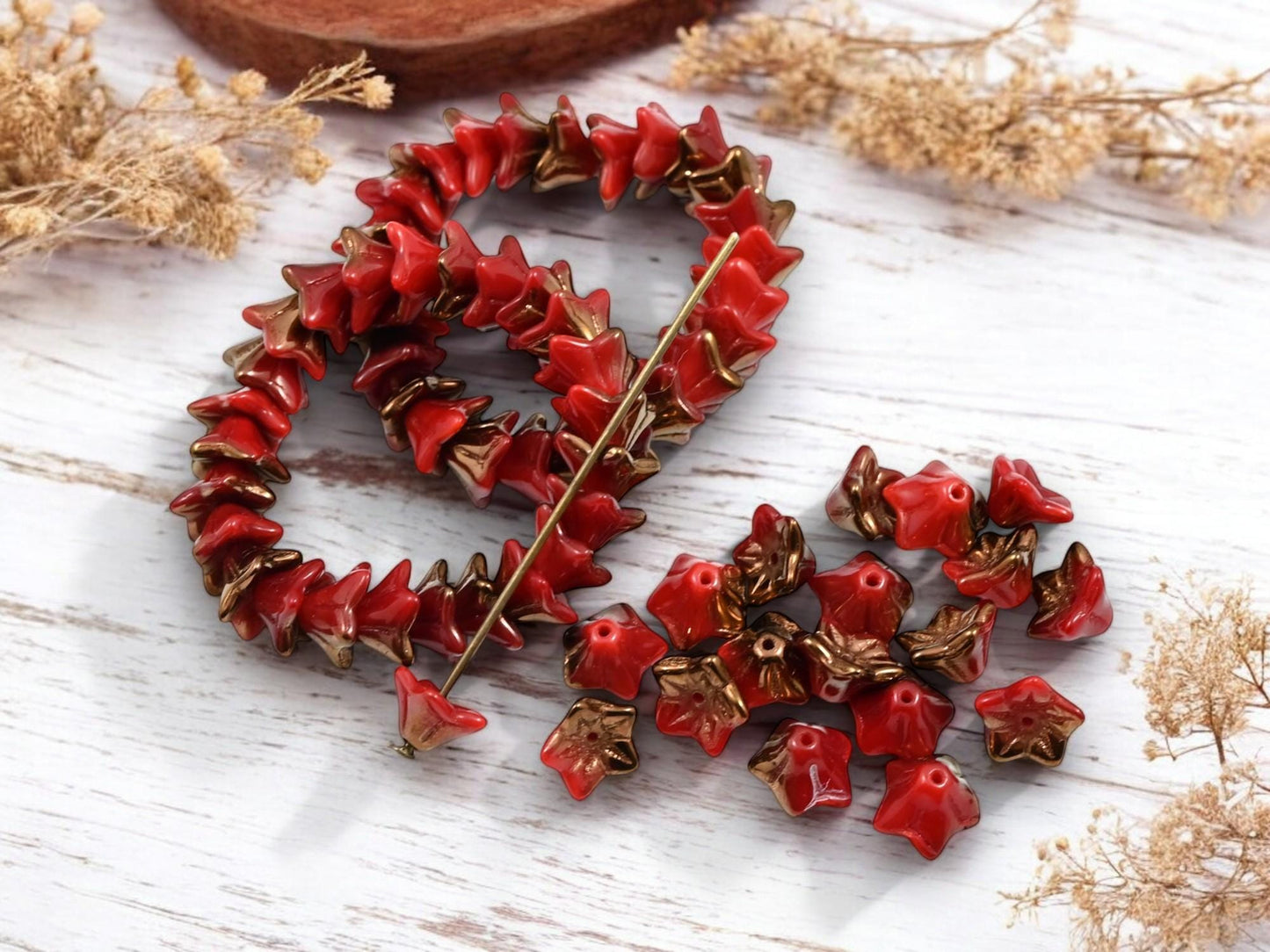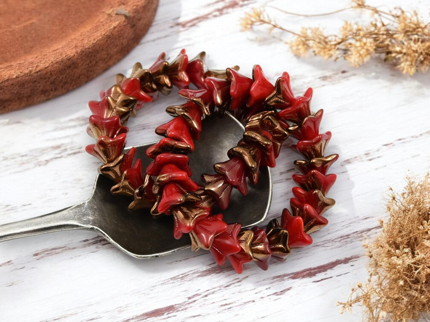 *25* 6x9mm Bronze Washed Red Opaline Bell Flower Beads