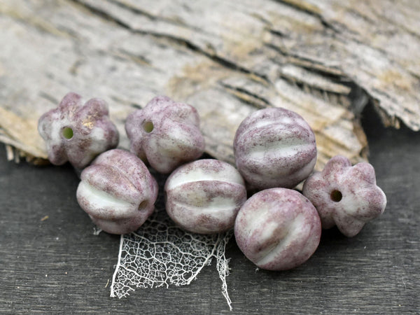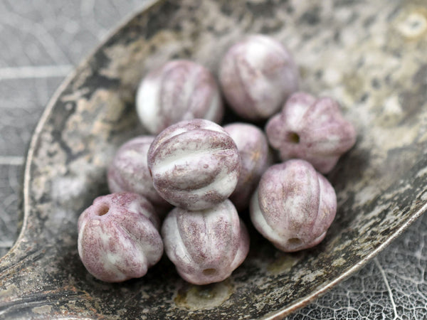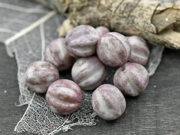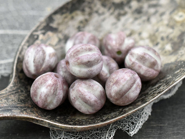 *15* 10mm Berry Washed Matte Mint Round Melon Beads