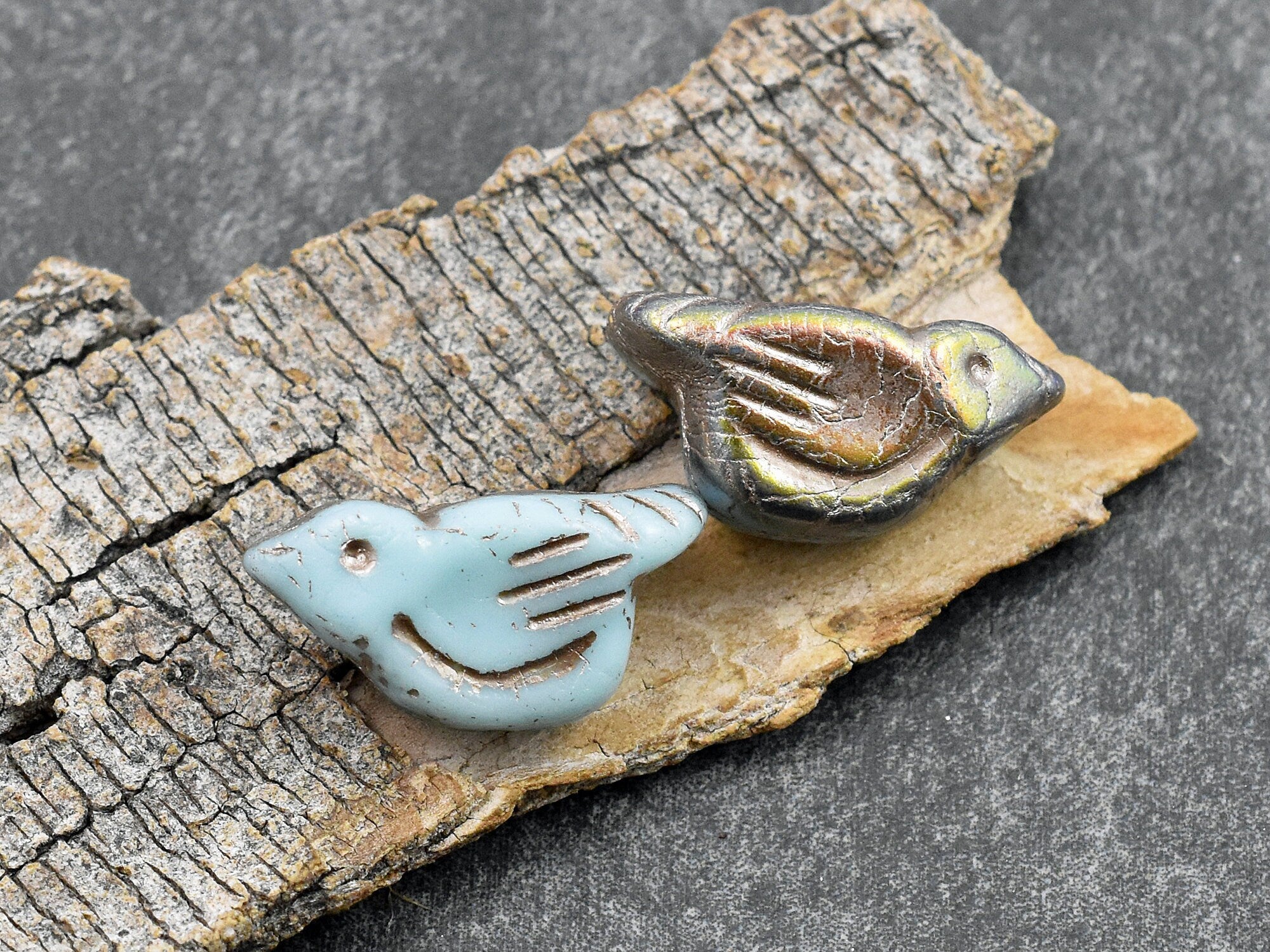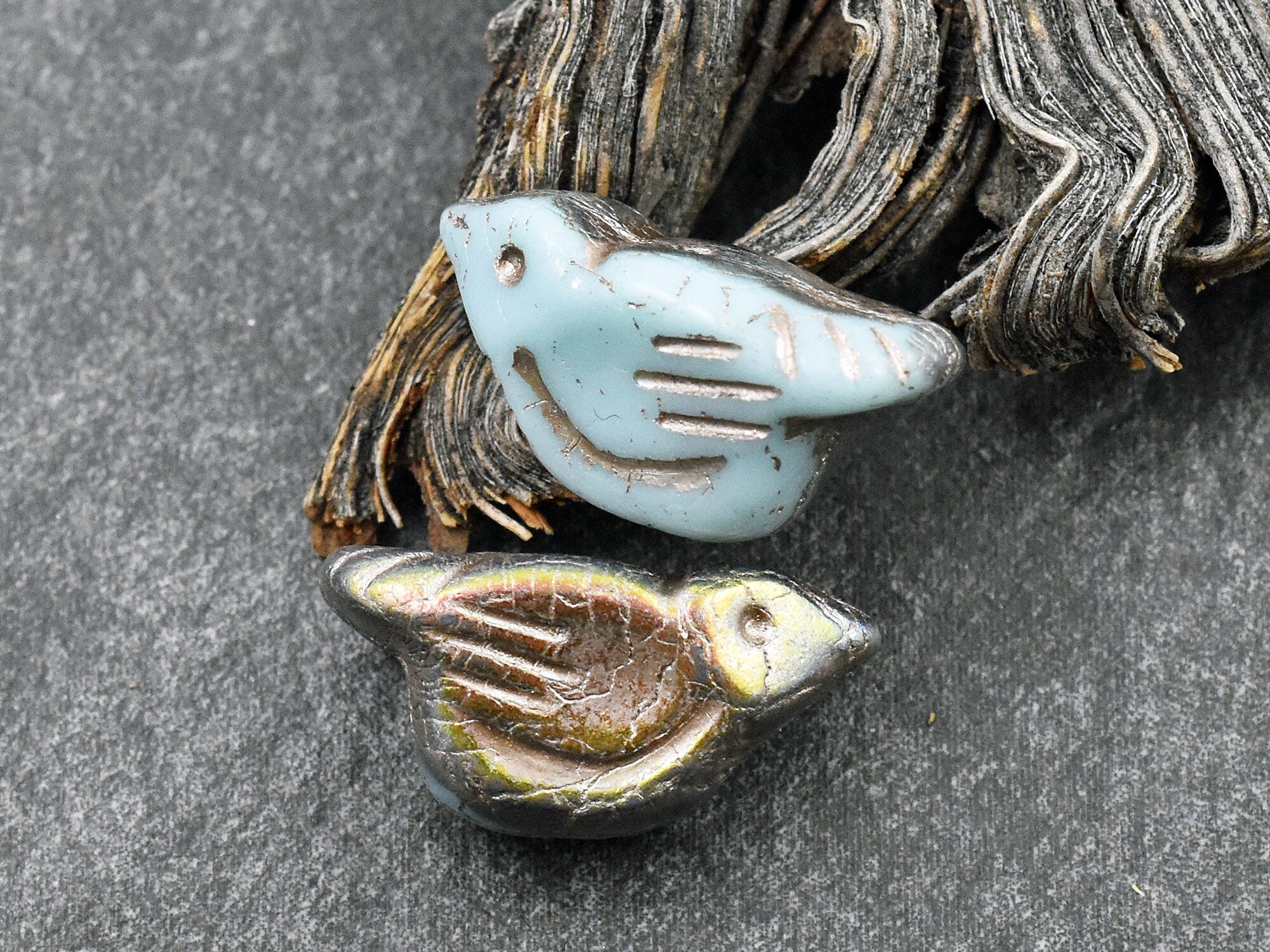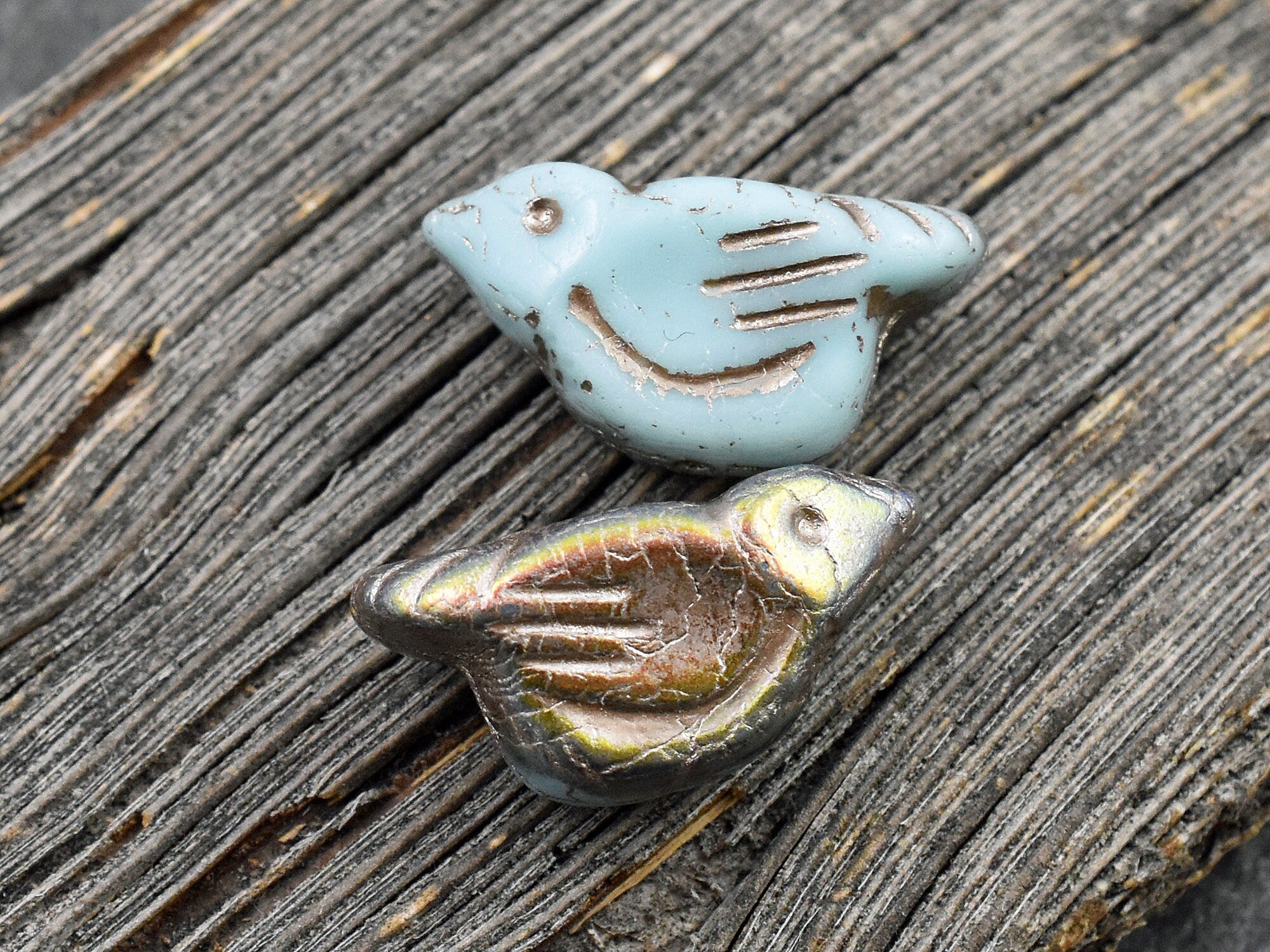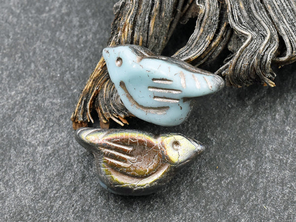 *6* 11x22mm Platinum Washed Baby Blue Peacock Bird Beads