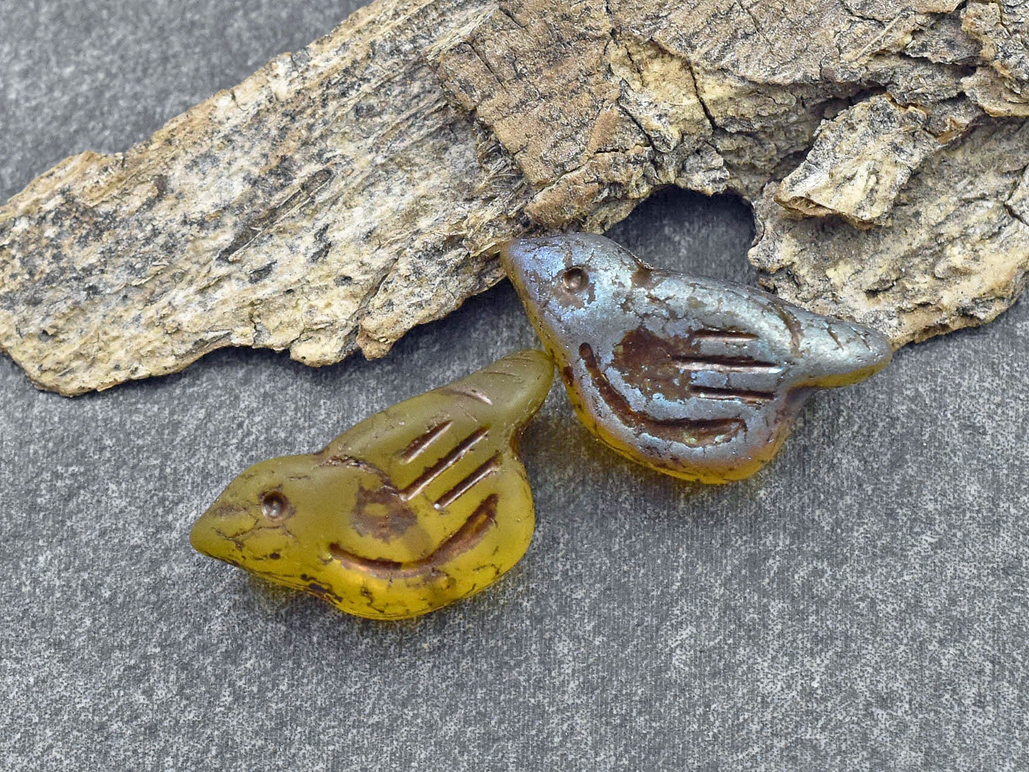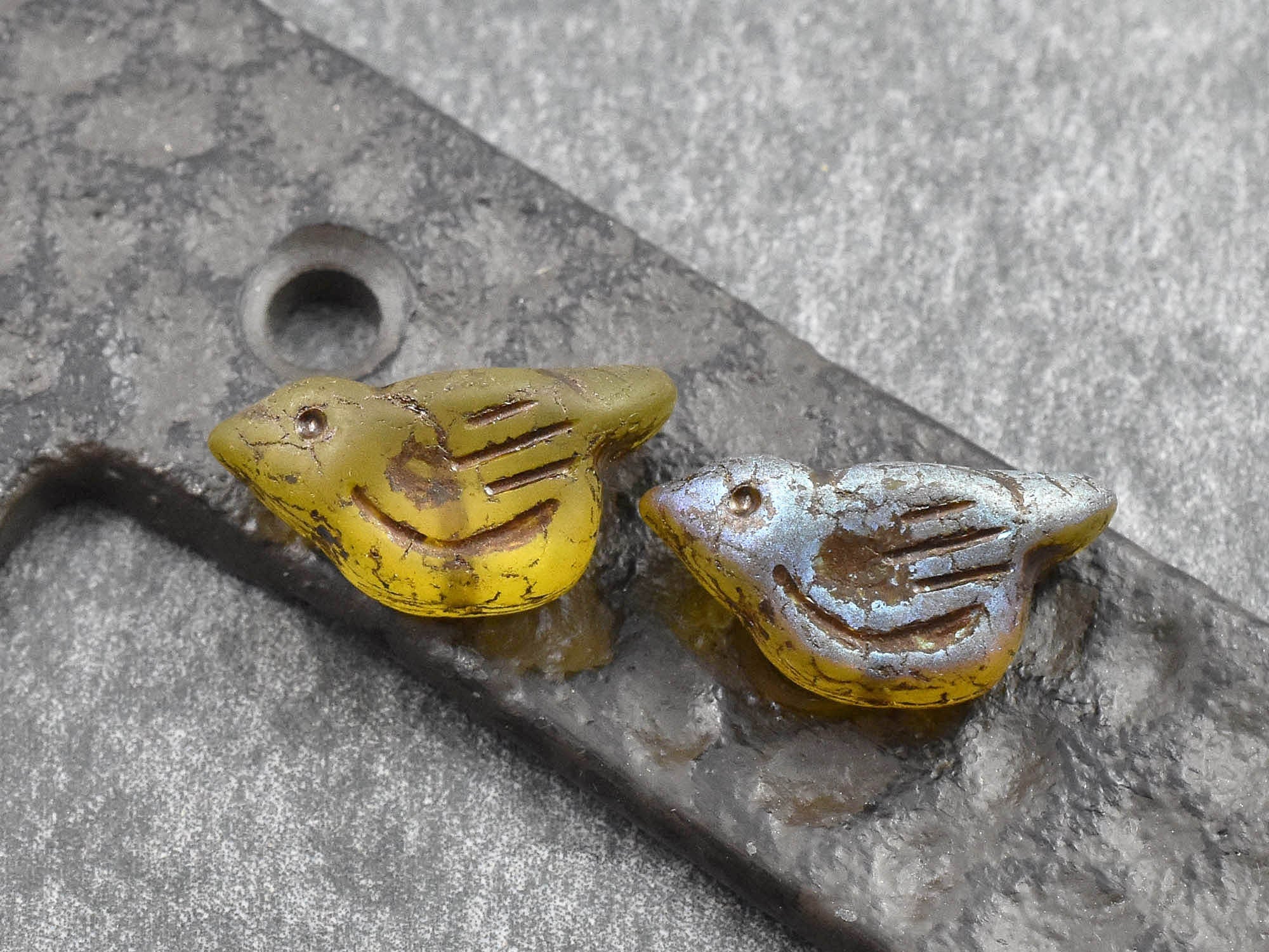 *6* 11x22mm Bronze Washed Yellow Topaz AB Crystal Bird Beads