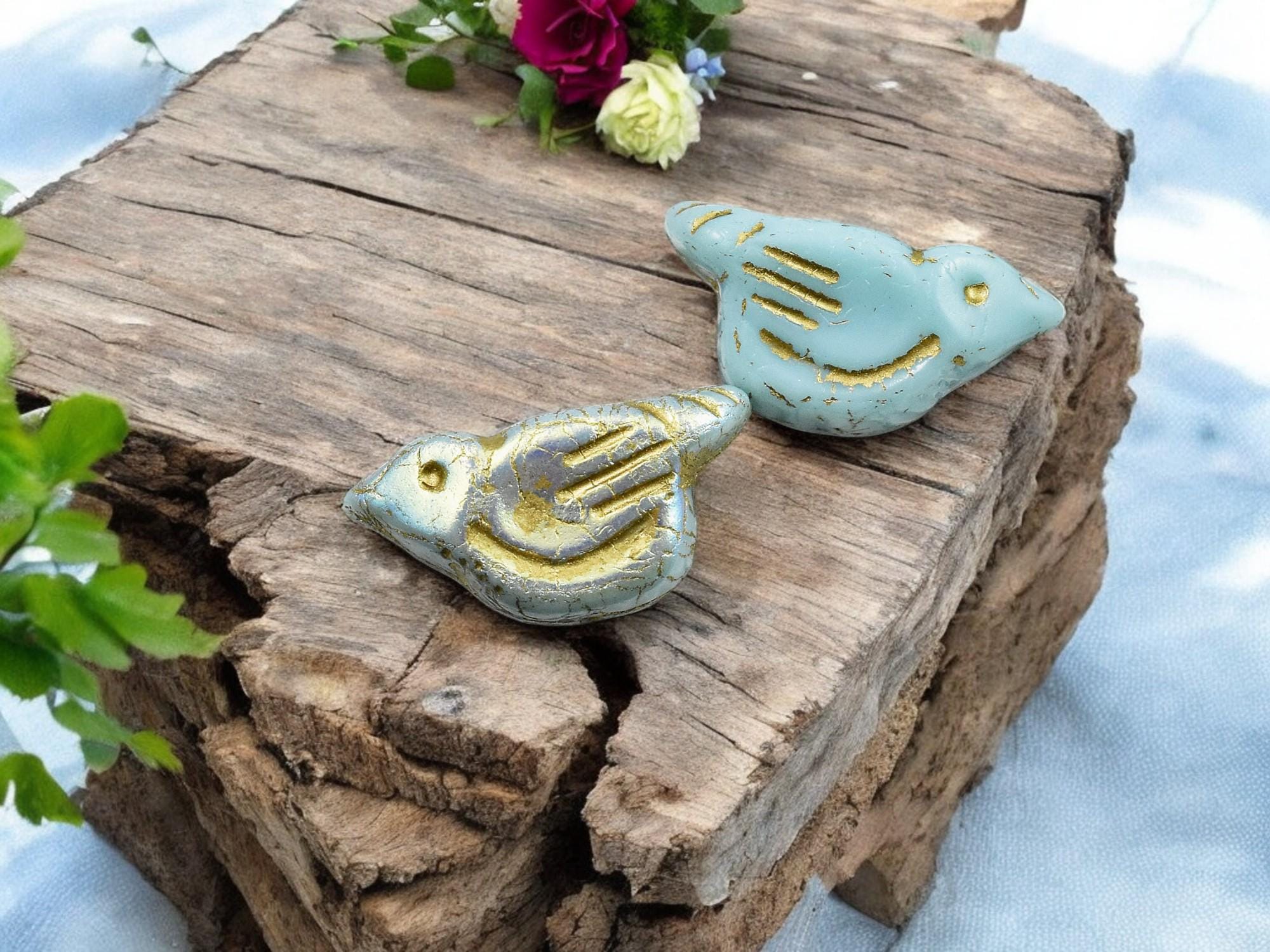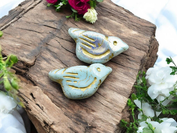*6* 11x22mm Gold Washed Baby Blue AB Bird Beads