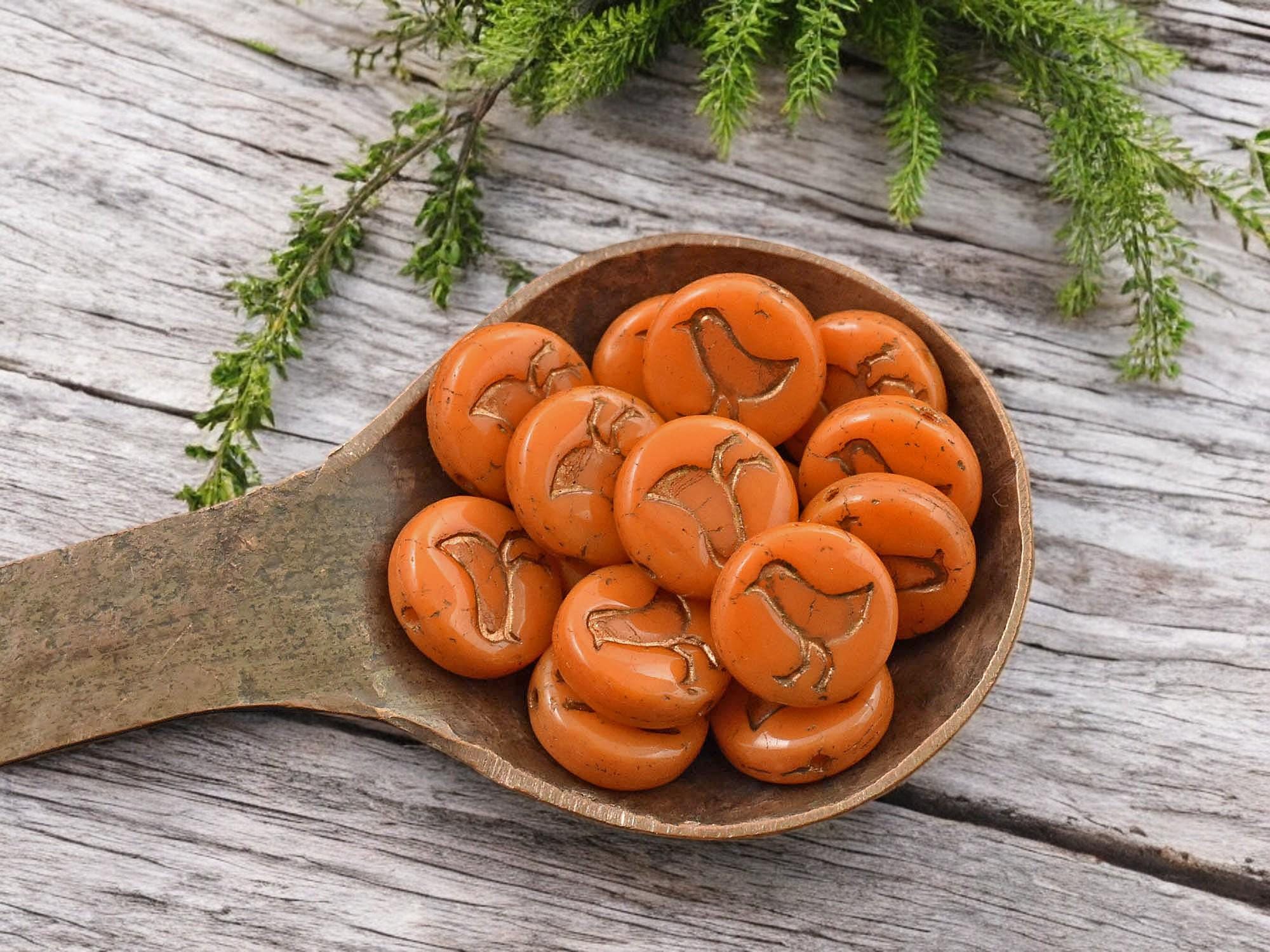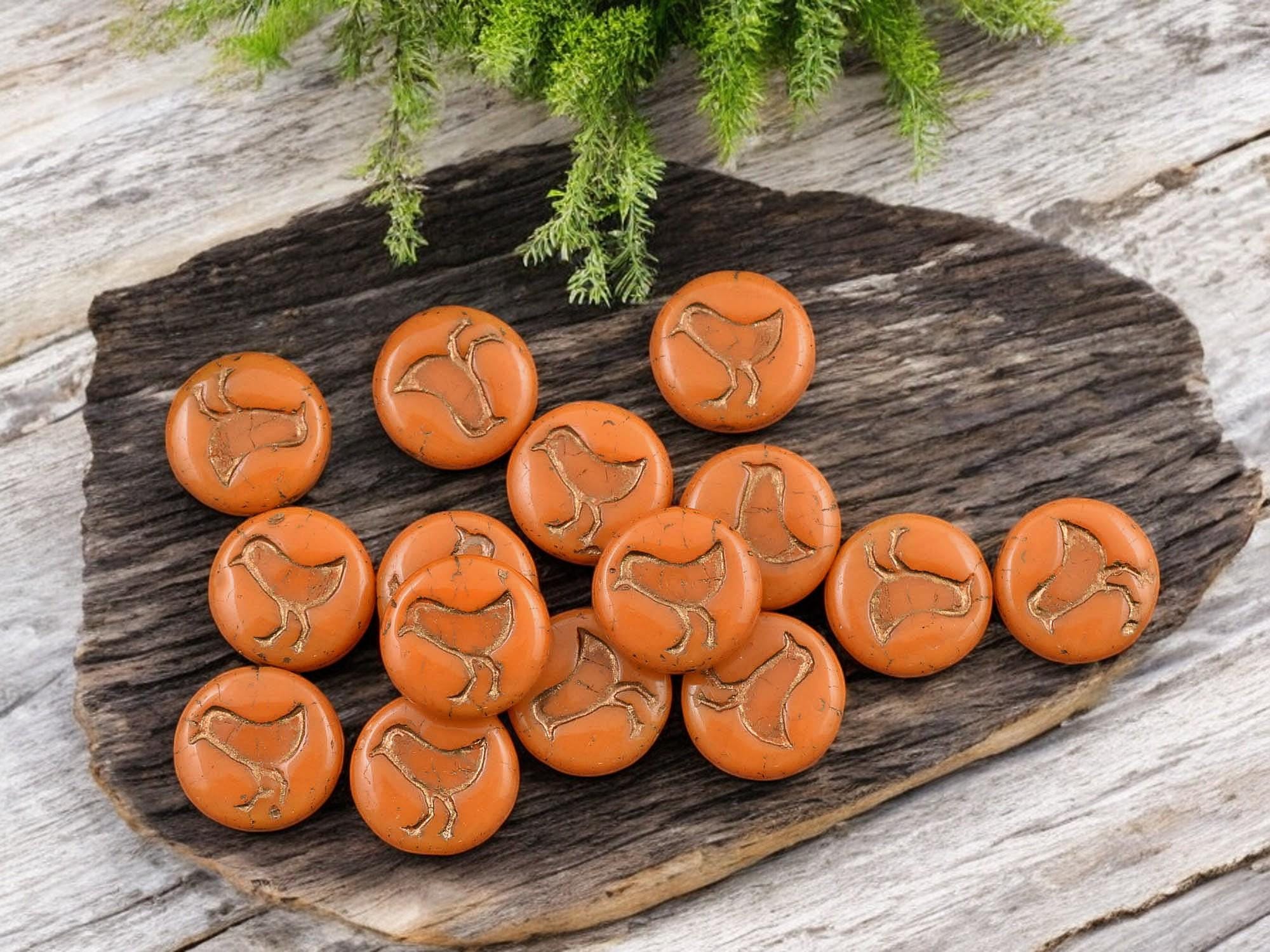 *15* 12mm Bronze Washed Opaque Orange Bird Coin Beads