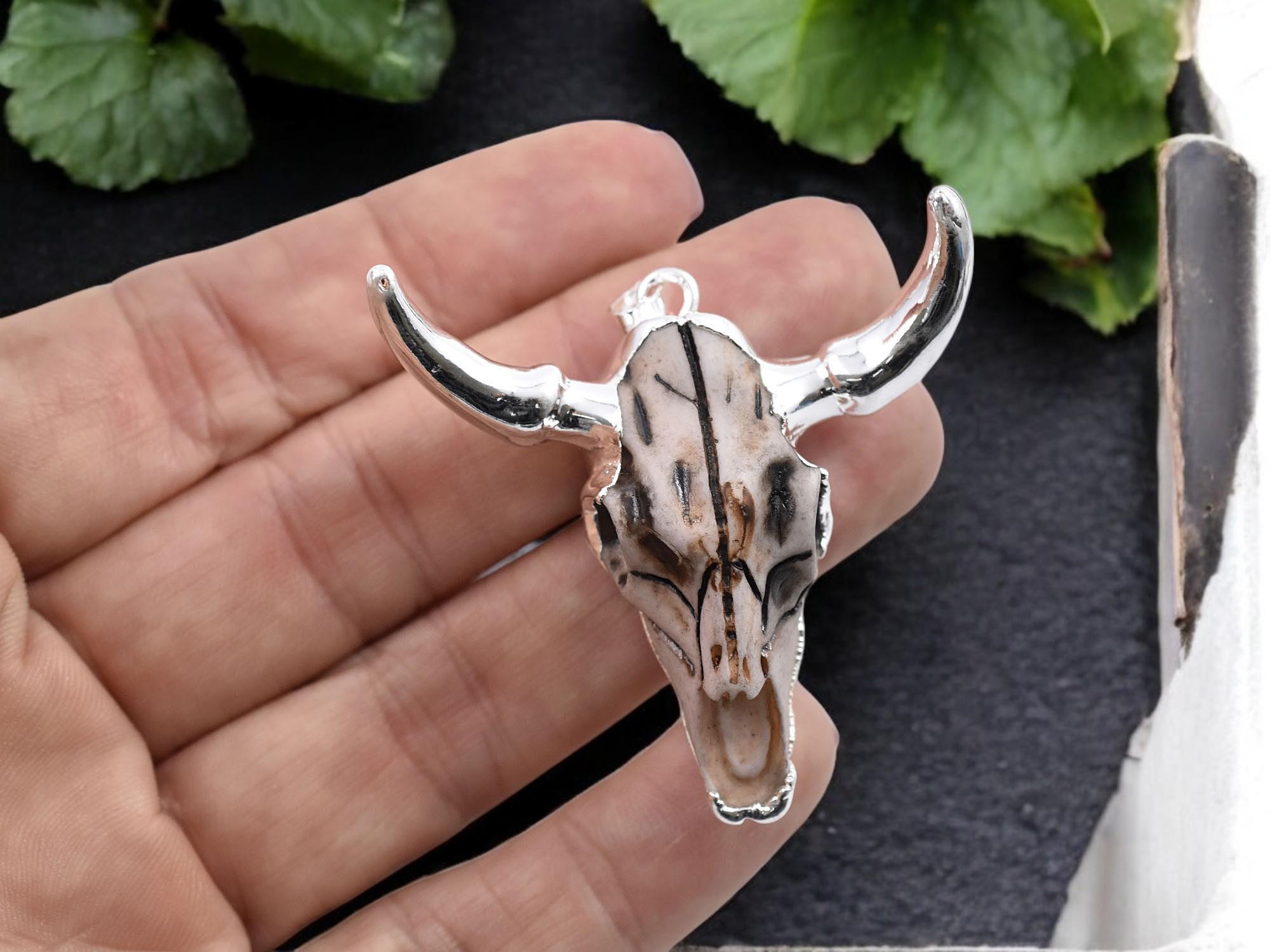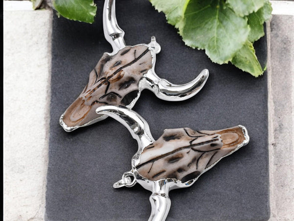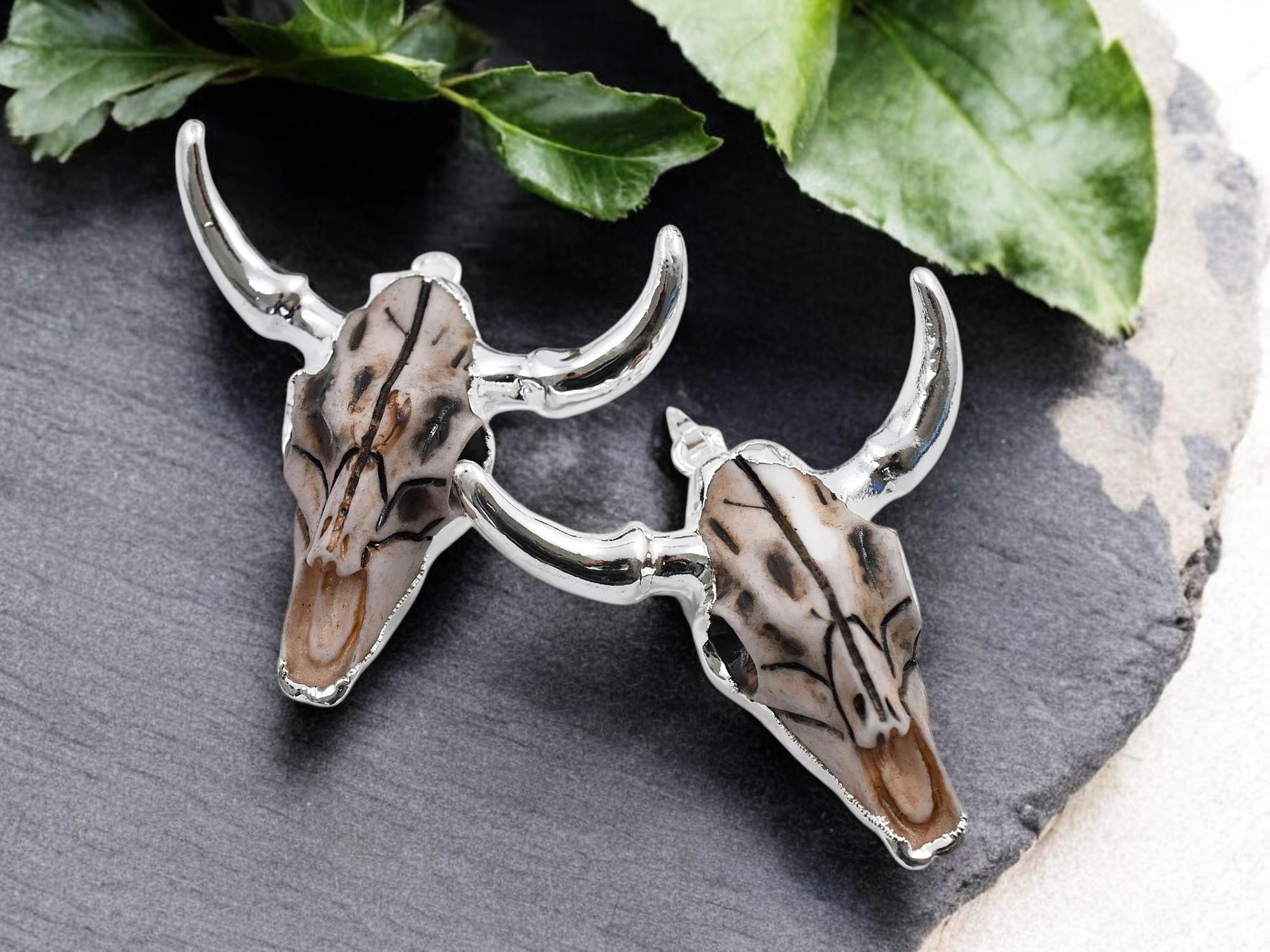 50x47x15mm Silver Plated Brass Resin Cattle Head Pendant