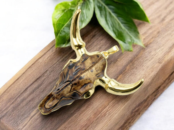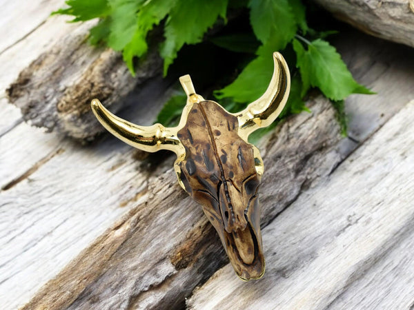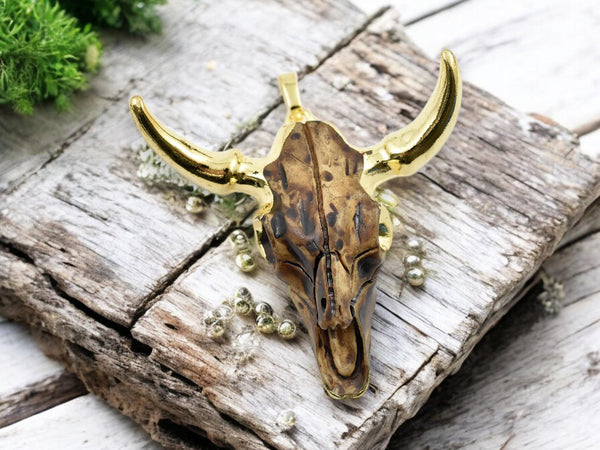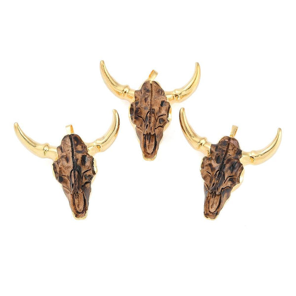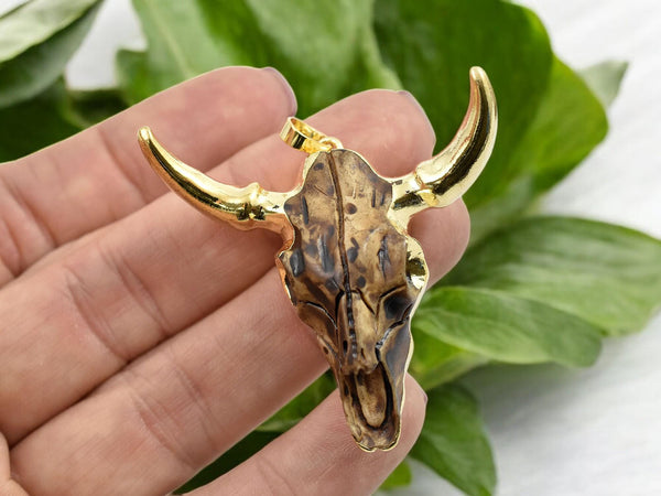 50x47x15mm Gold Plated Brass Resin Cattle Head Pendant