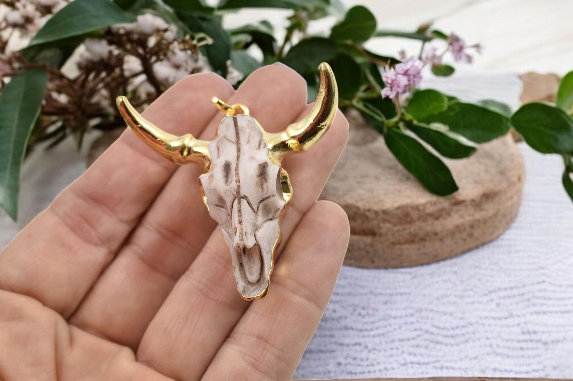 Type/Shape: Gold plated brass resin cow head pendant w/bail