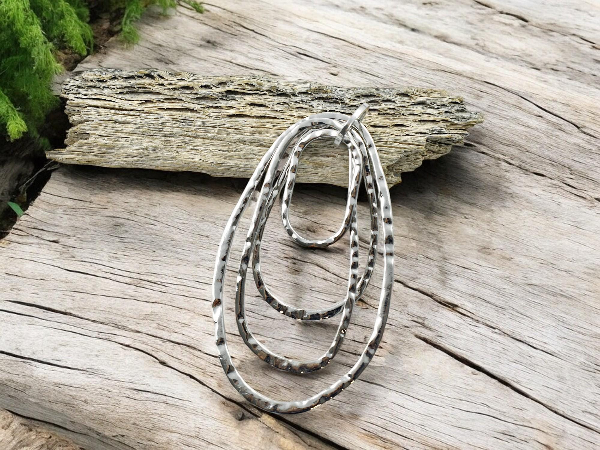 90x48mm Antique Silver Hammered Floating Ring Pendant