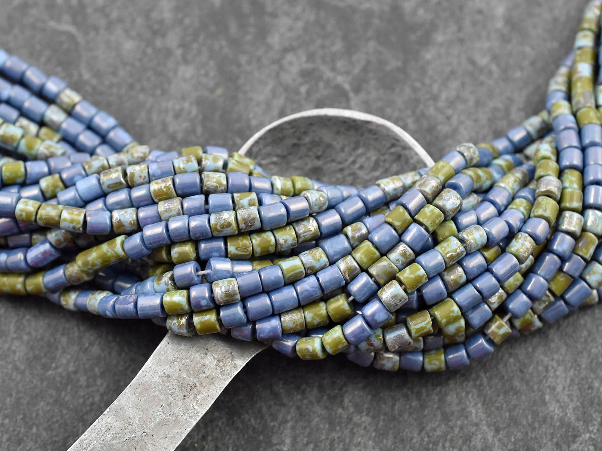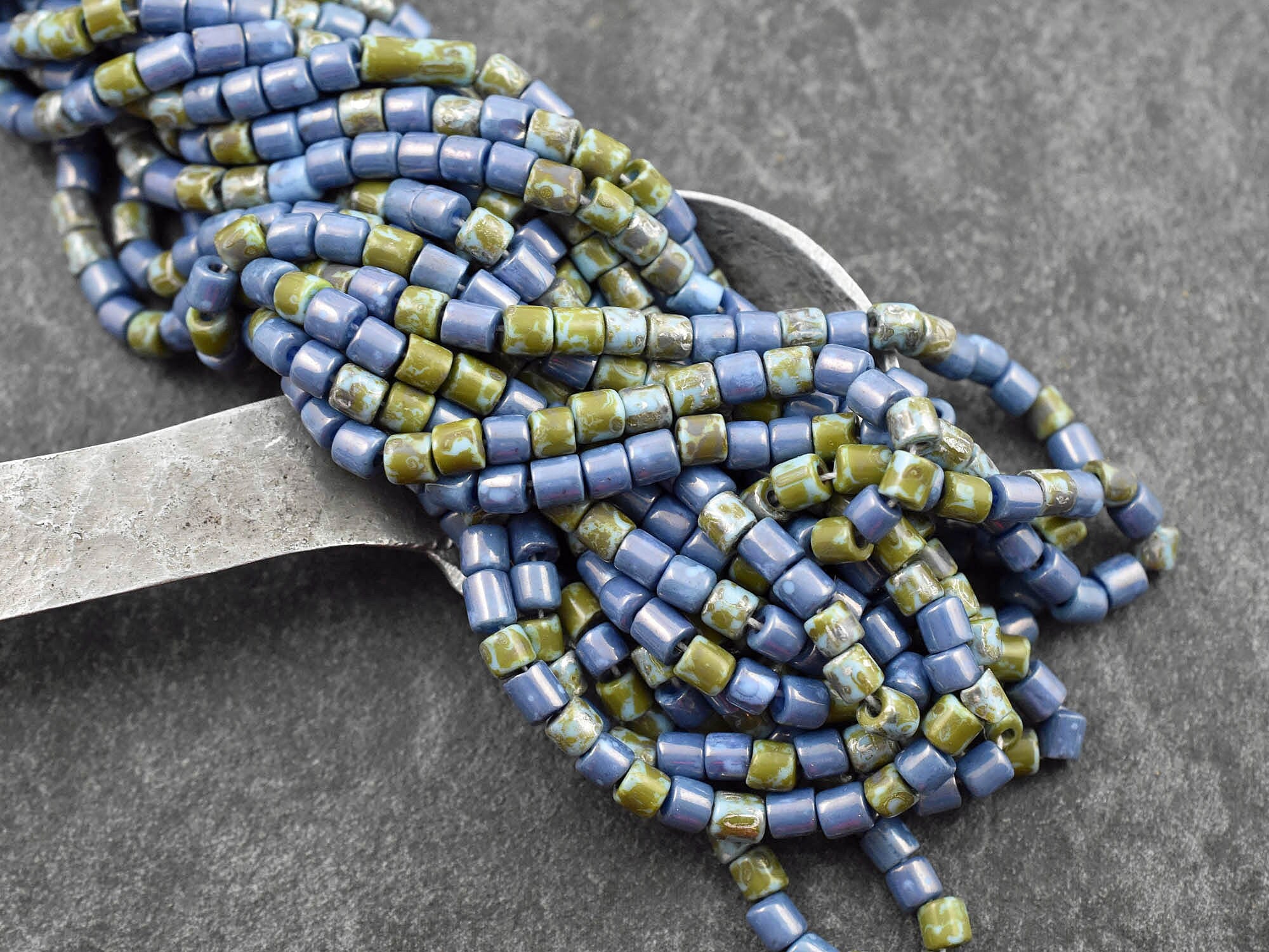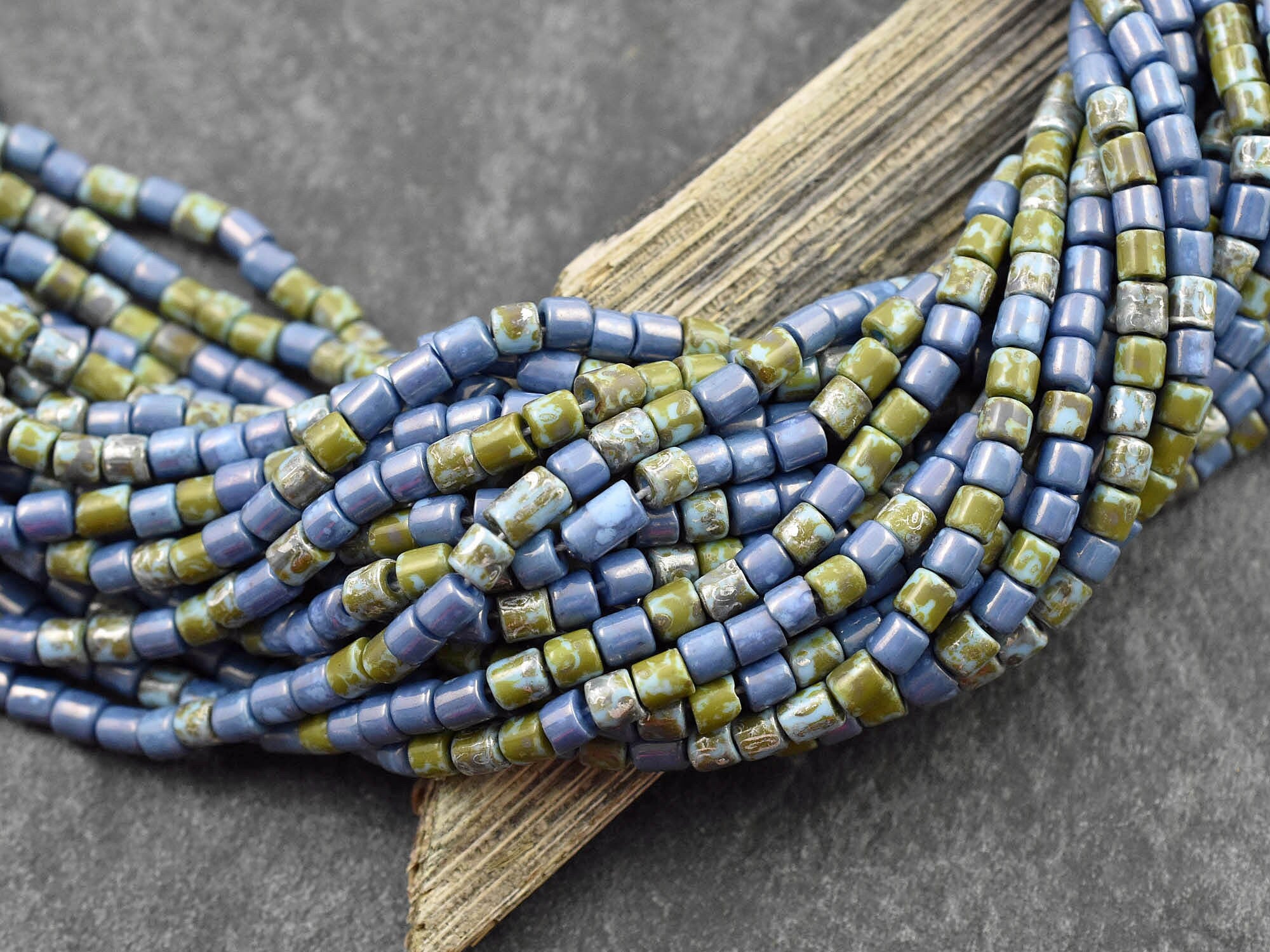 ♥ Aged picasso czech glass bugle tube beads