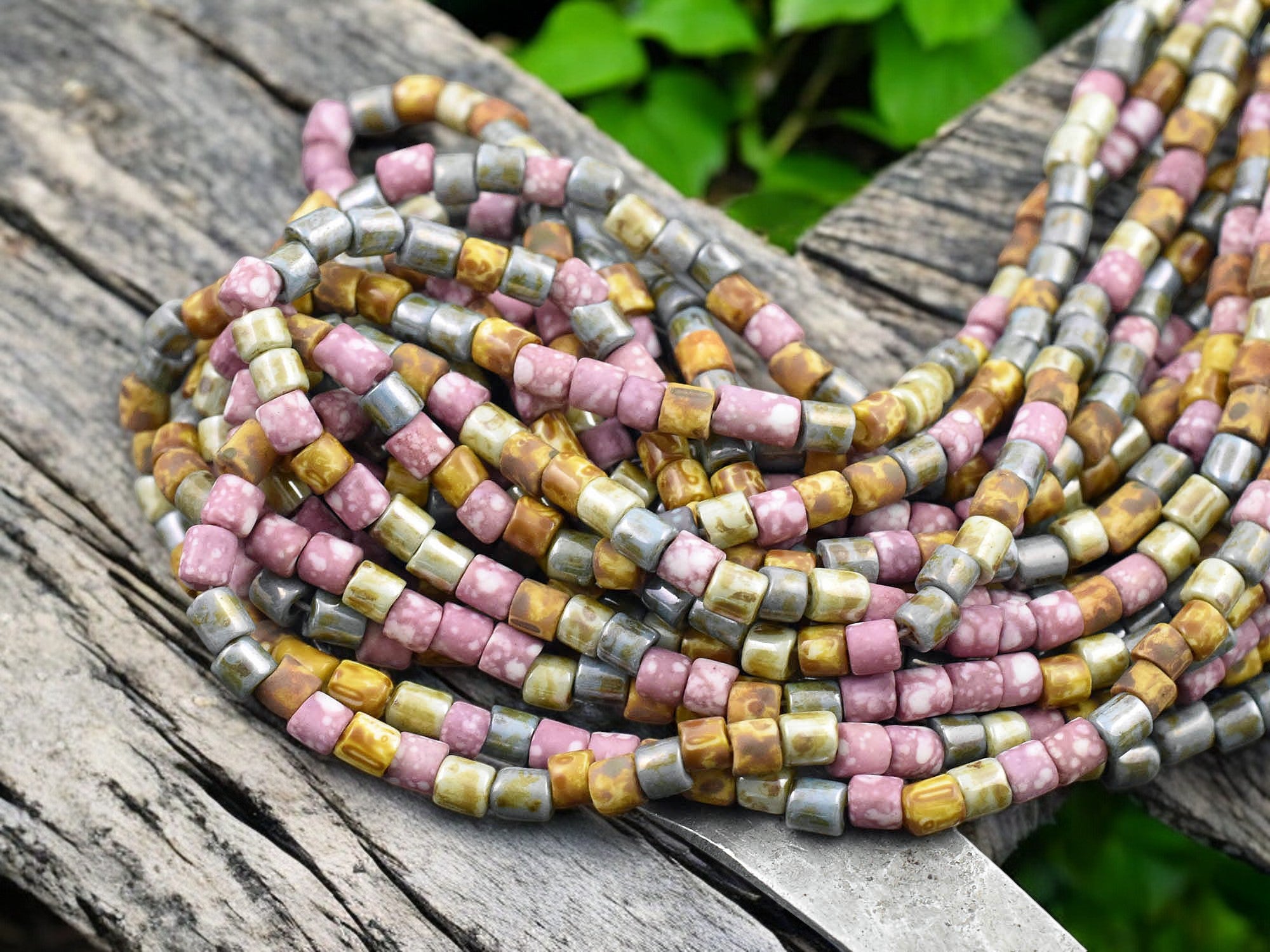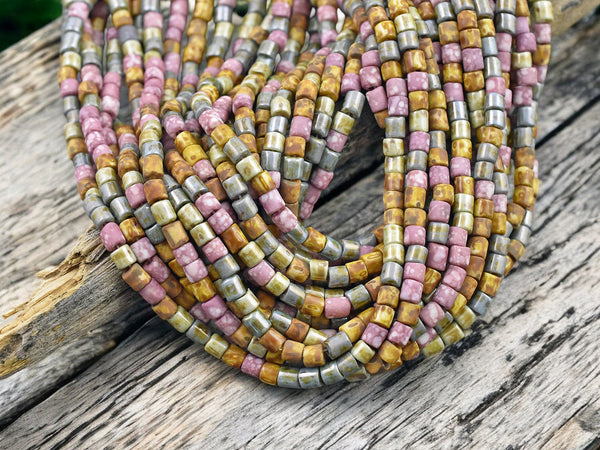 6/0 Aged Pink Medley Picasso Bugle Tube Seed Bead Mix (21" Strand)