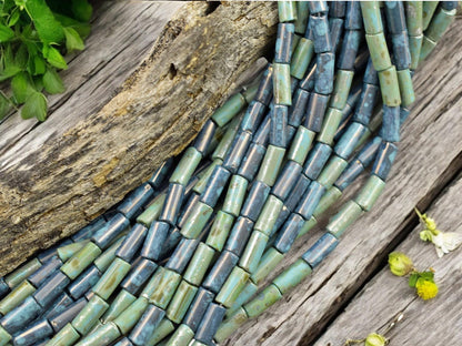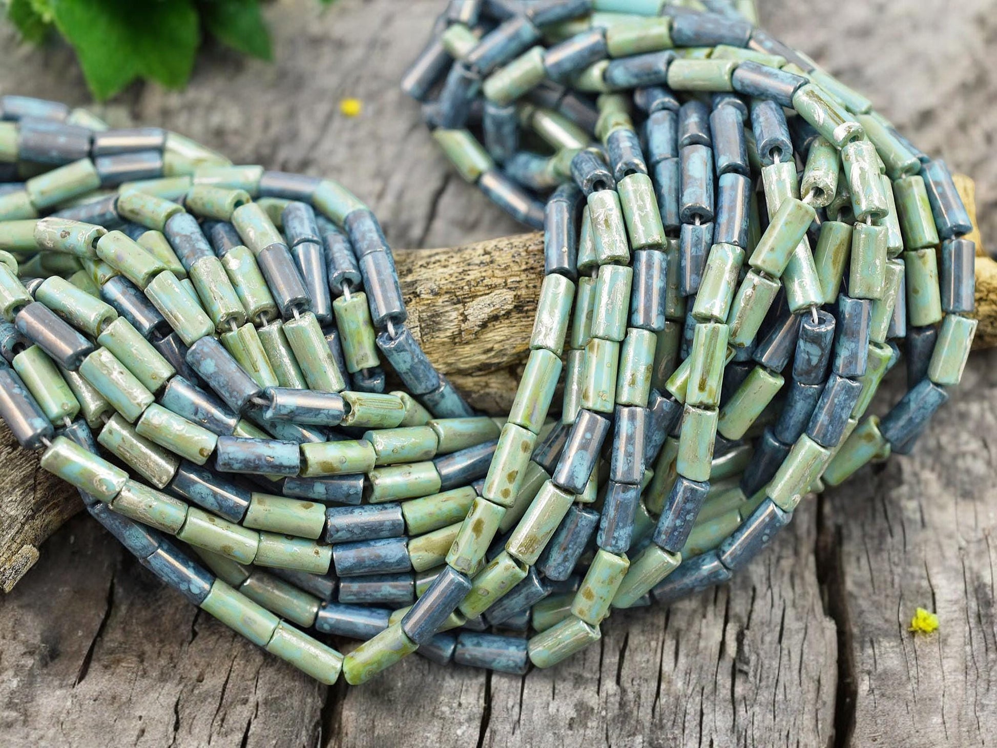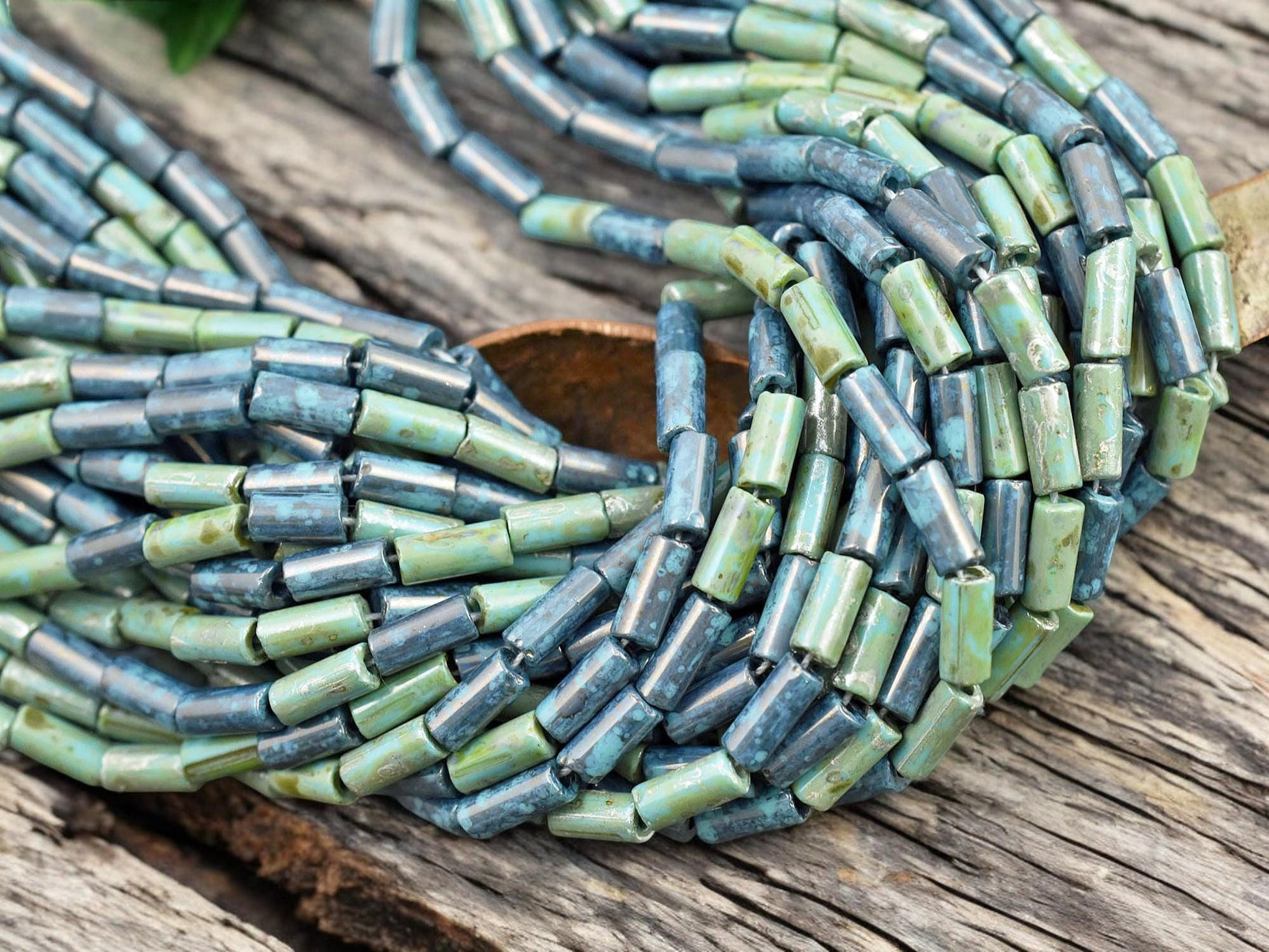 9x4mm Aged Mixed Turquoise Picasso Bugle Bead Mix