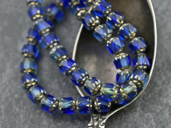 *20* 6mm Gold Washed Matte Sapphire Aqua Cathedral Beads