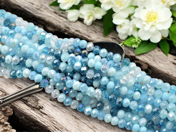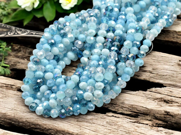 5x6mm Blue Mix Electroplated Glass Faceted Rondelle Beads (16" Strand)