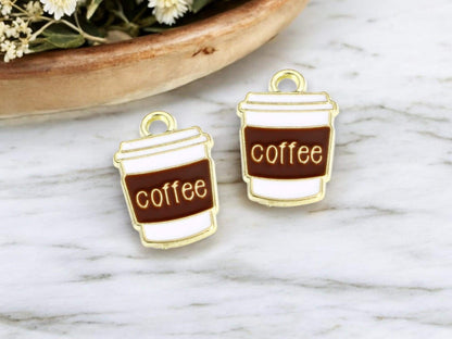 *10* 18x11mm Gold Plated "Coffee" Enamel Charms