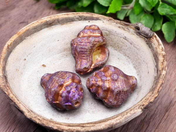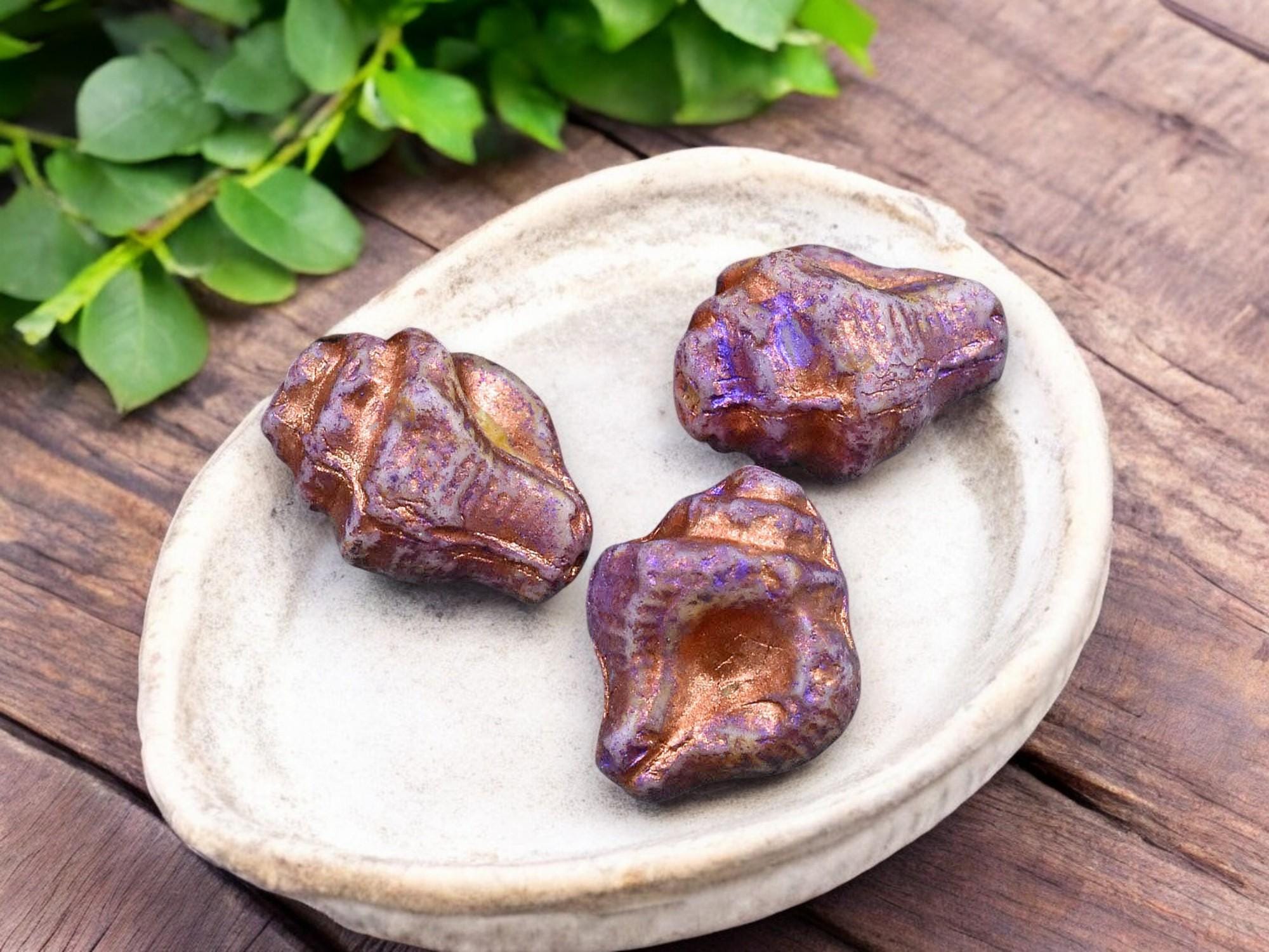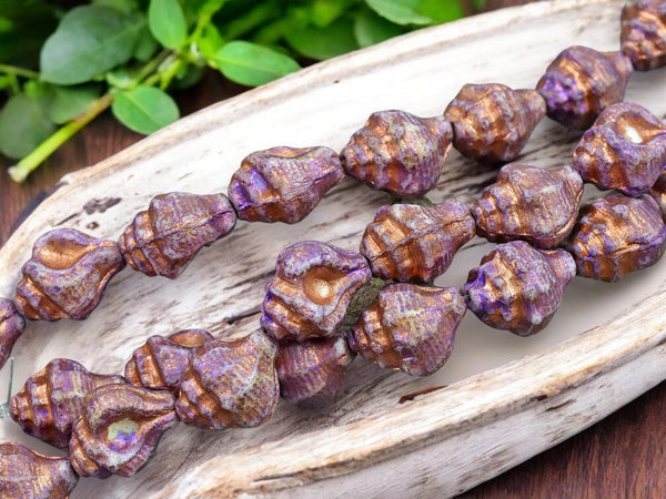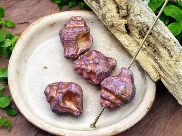 *8* 14x11mm Metallic Copper Washed Fuchsia Purple Alabaster Conch Shell Beads