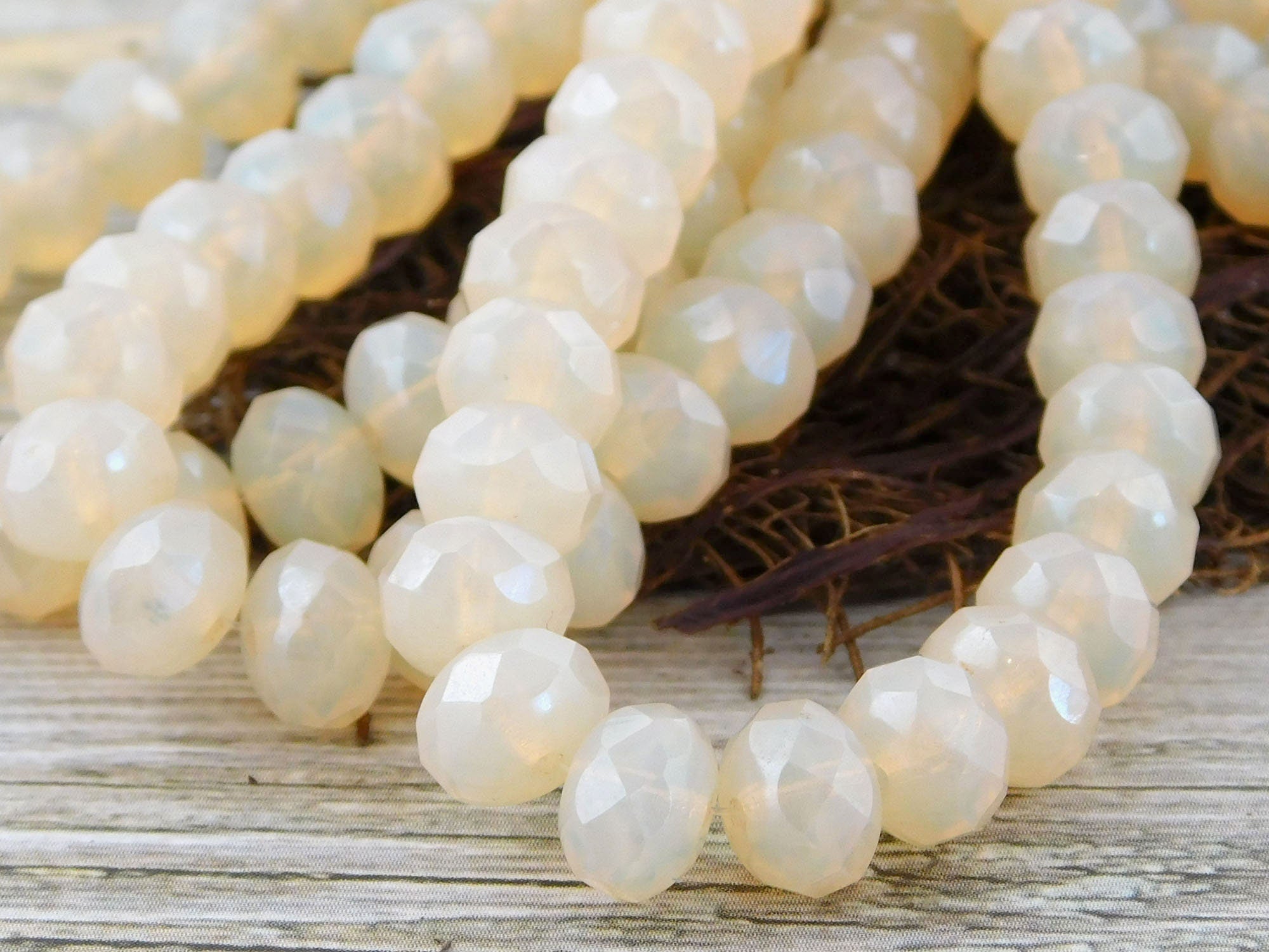 Cream Opalite Fire Polished Rondelle Beads - 3x5mm, 5x7mm or 6x8mm