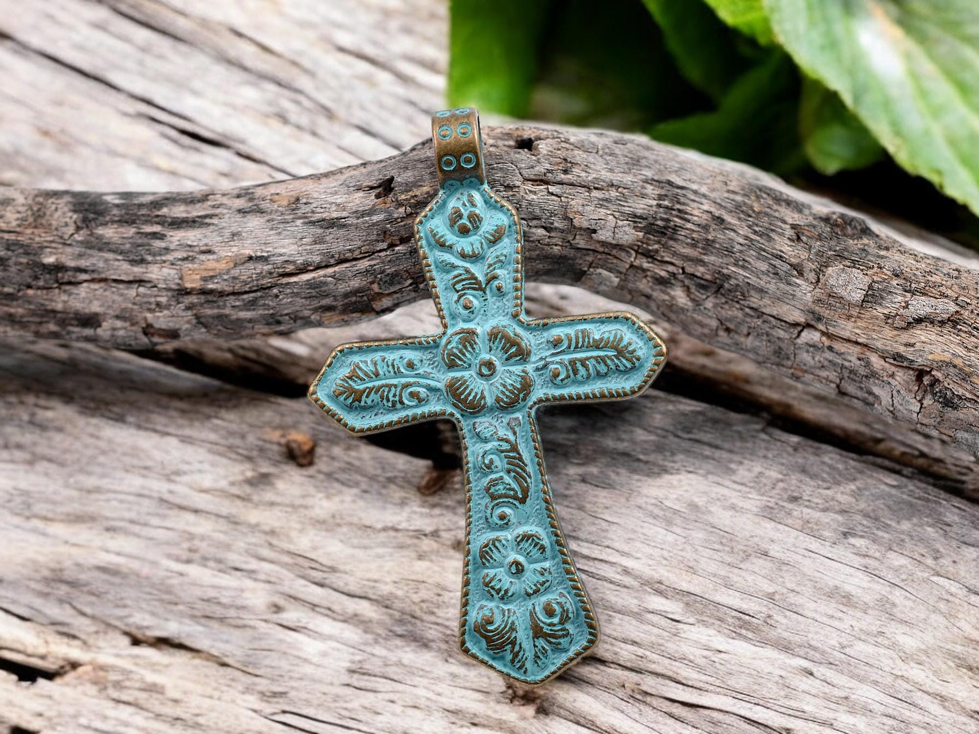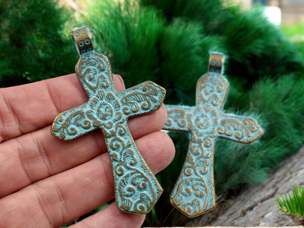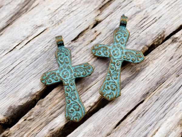 *2* 71x44mm Green Patina Antique Bronze Cross Pendants