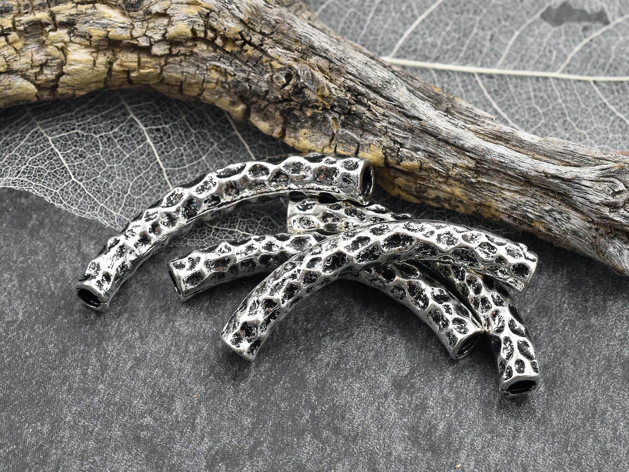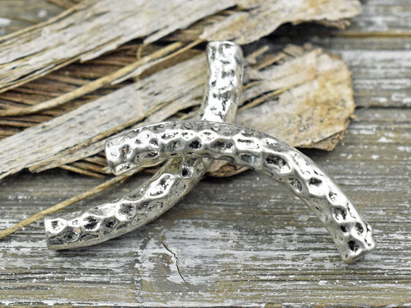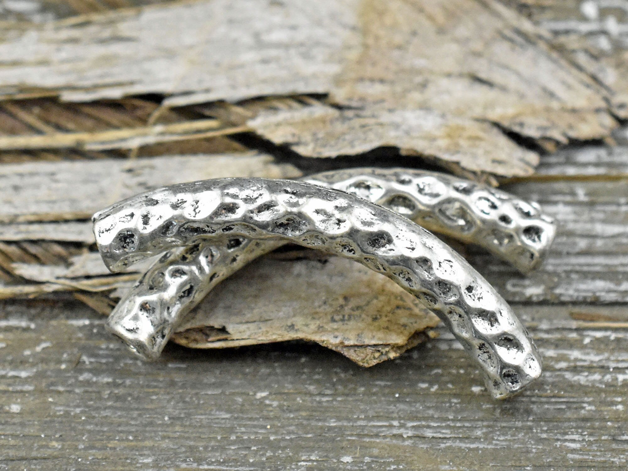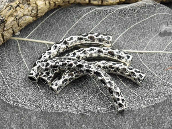 *6* 42x6mm Antique Silver Hammered Curved Beads