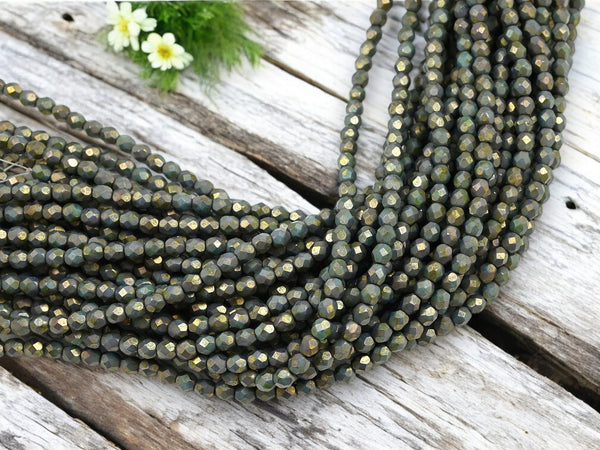 *50* 4mm Turquoise Copper Picasso Firepolished Round Beads