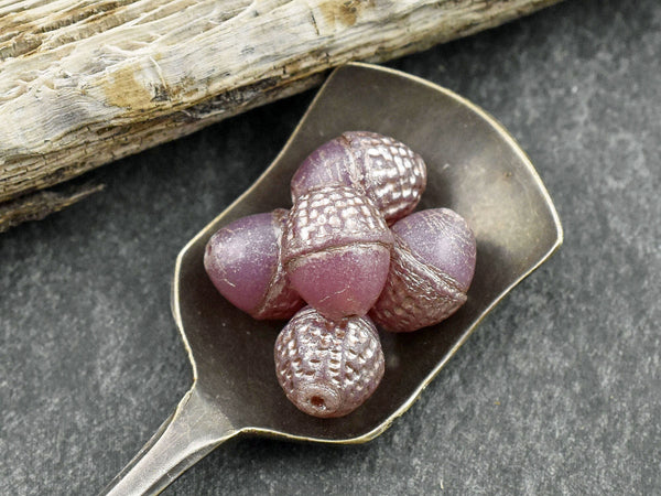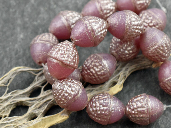 *8* 10x12mm Platinum Washed Matte Dusty Pink Acorn Oval Beads