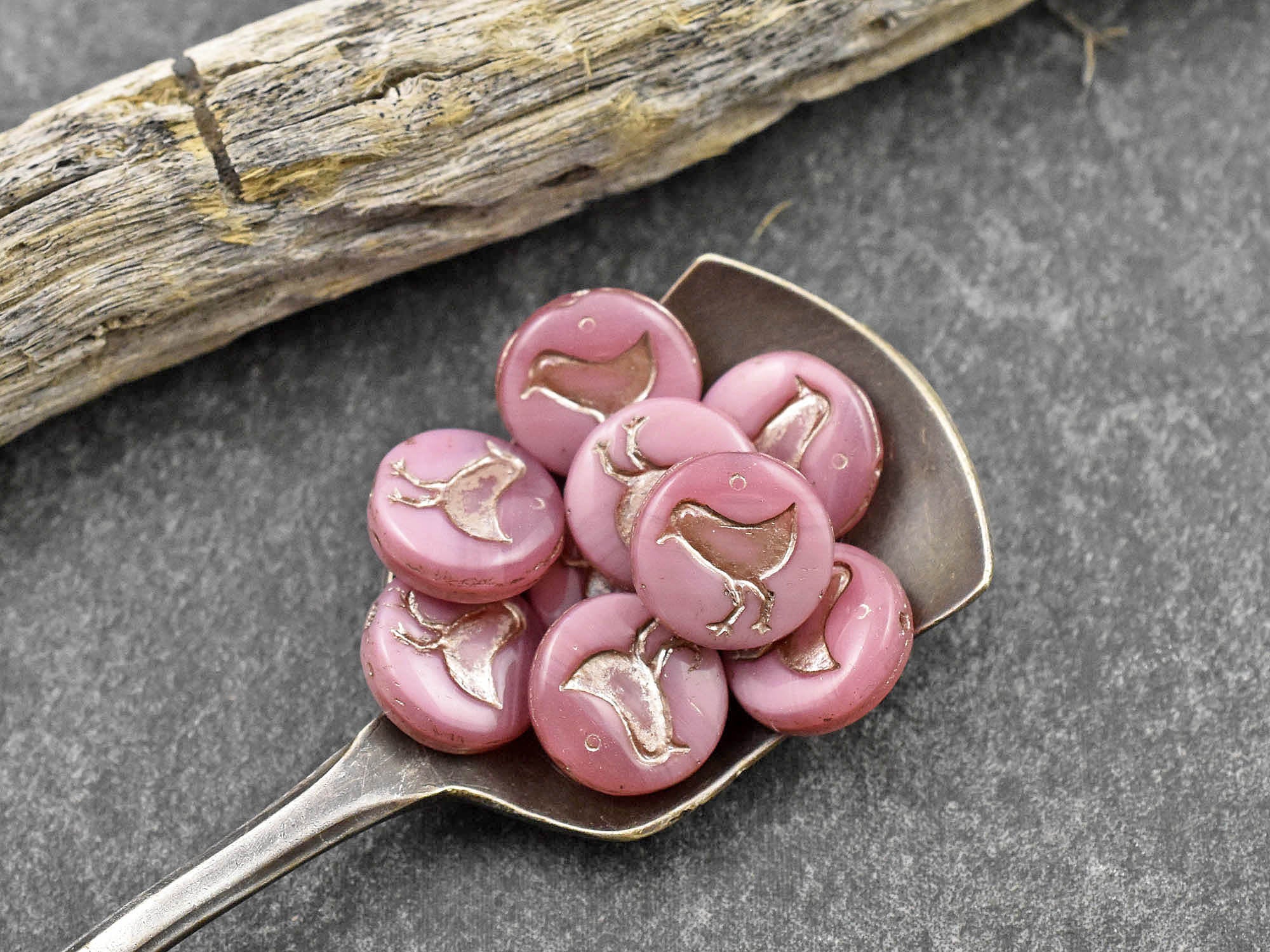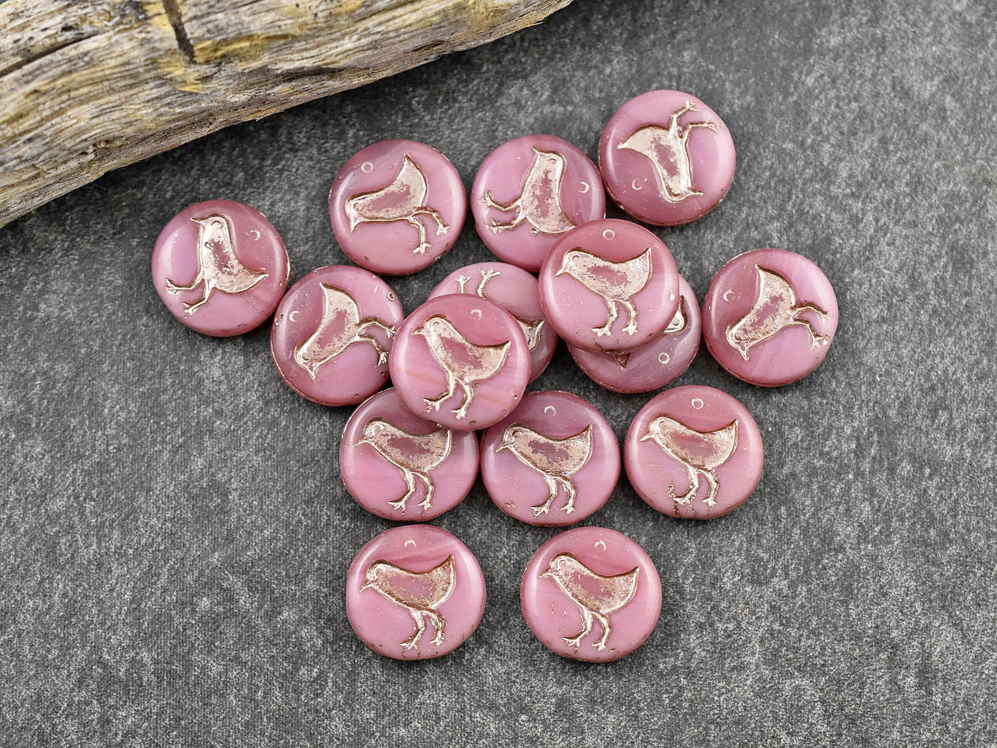 *15* 12mm Platinum Washed Varigated Pink Silk Bird Coin Beads