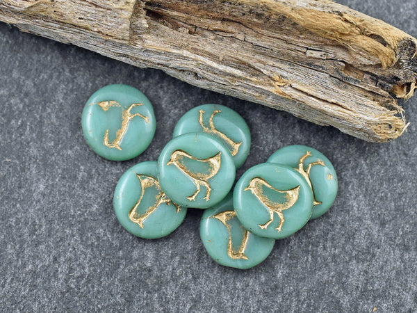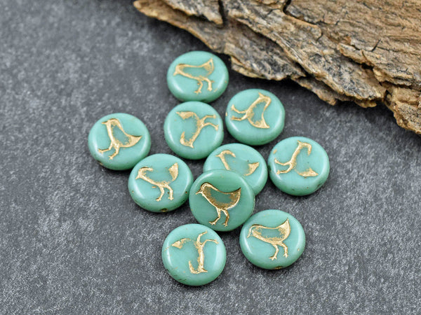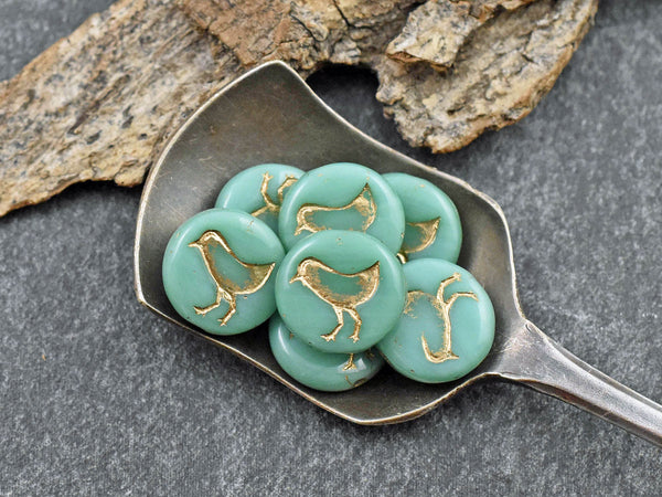 *15* 12mm Gold Washed Opaque Turquoise Bird Coin Beads