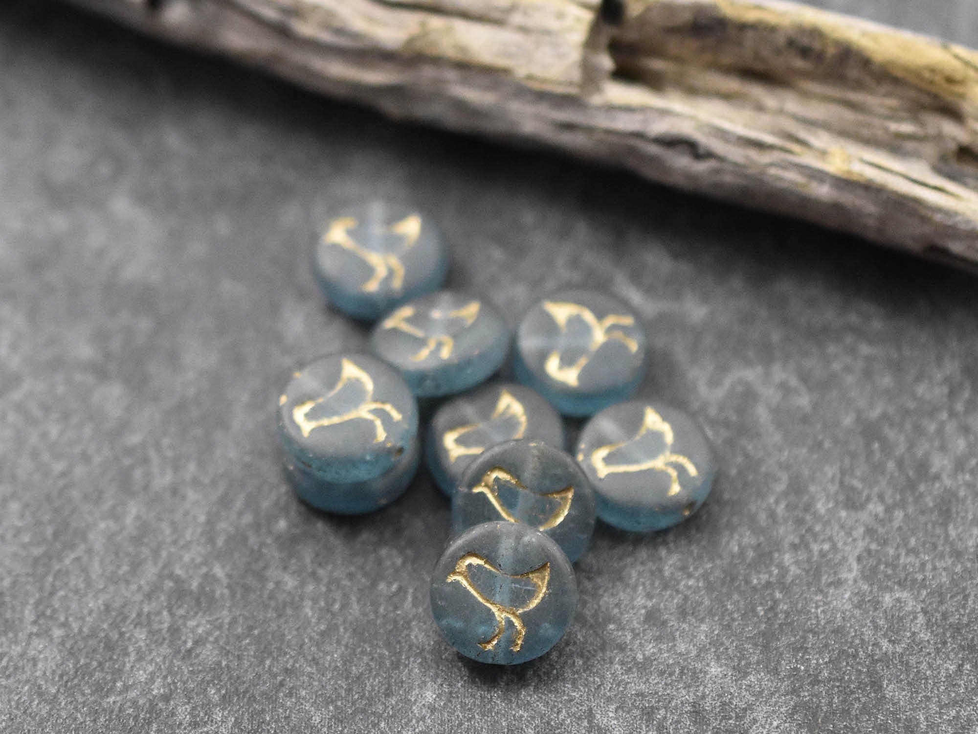 *15* 12mm Gold Washed Matte Transparent Montana Blue Bird Coin Beads