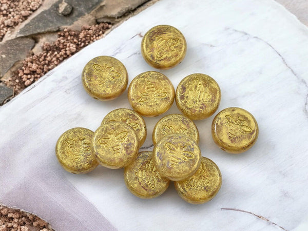 ♥ Type/Shape: Czech pressed glass coin beads with flying bee design (design on both sides of bead)