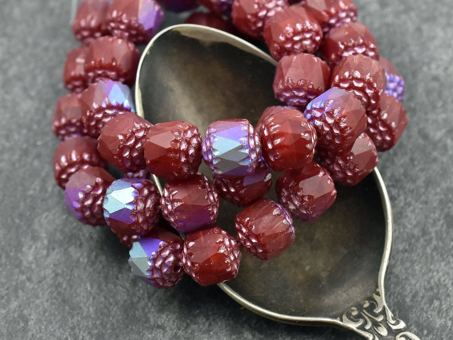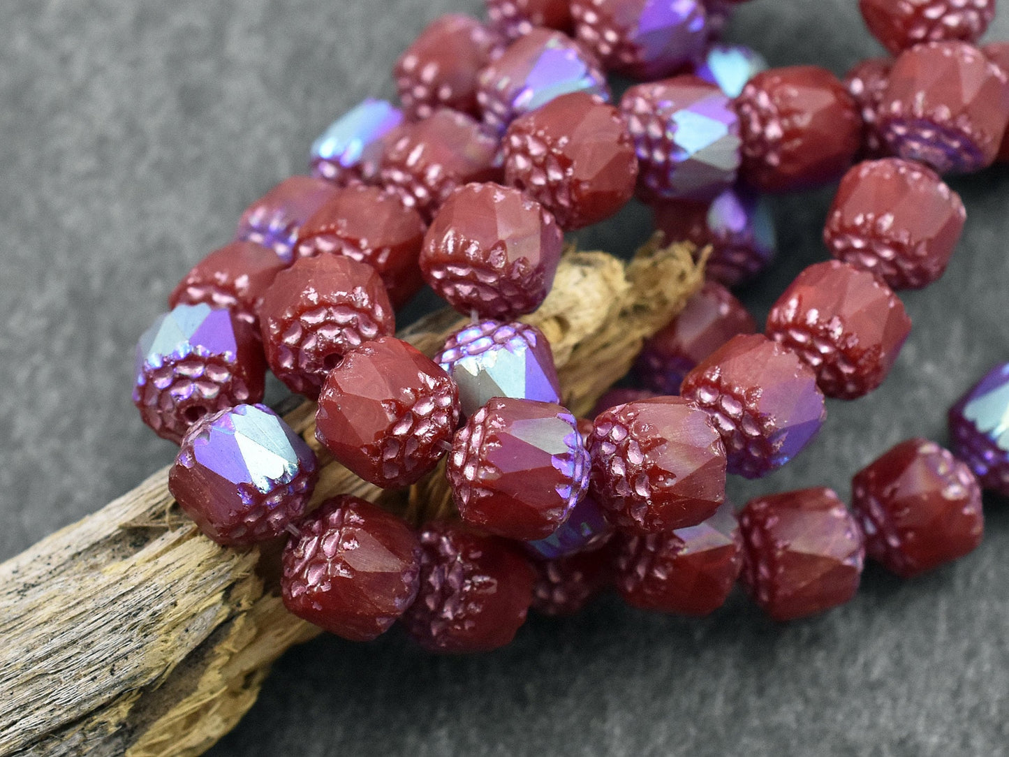 *15* 8mm Metallic Pink Washed Ruby Red AB Fire Polished Cathedral Beads